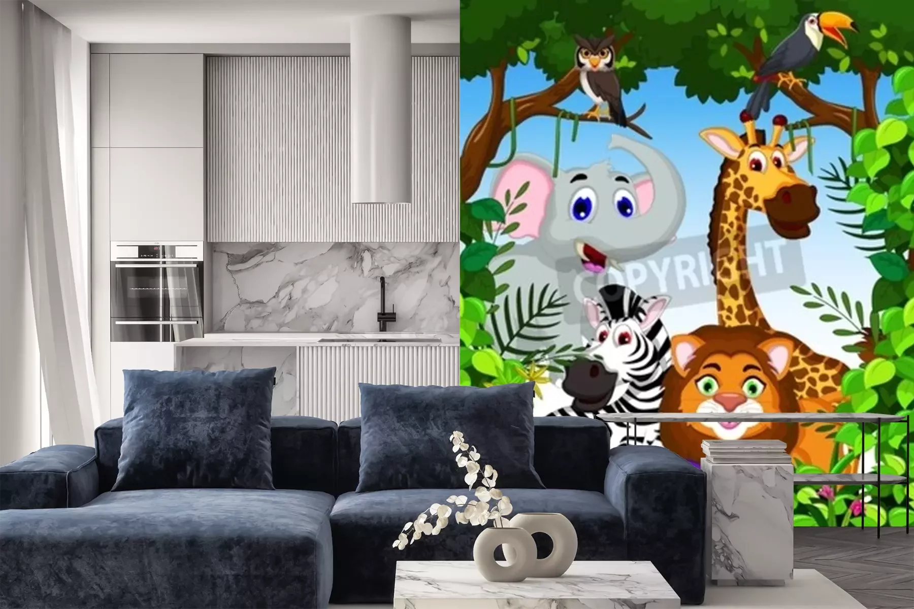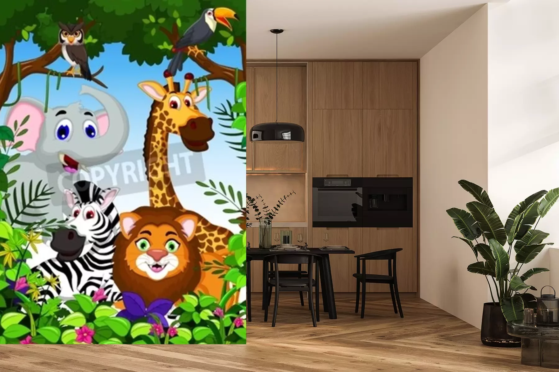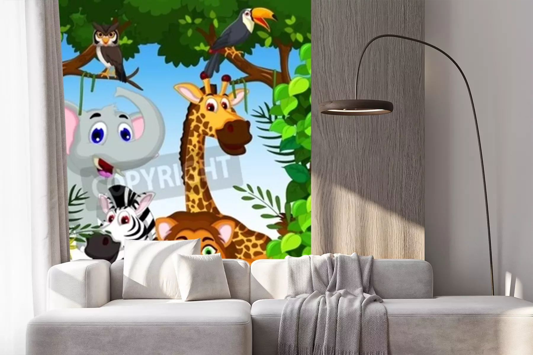 Sticker Lustige Tierkarikaturansammlung im Dschungel