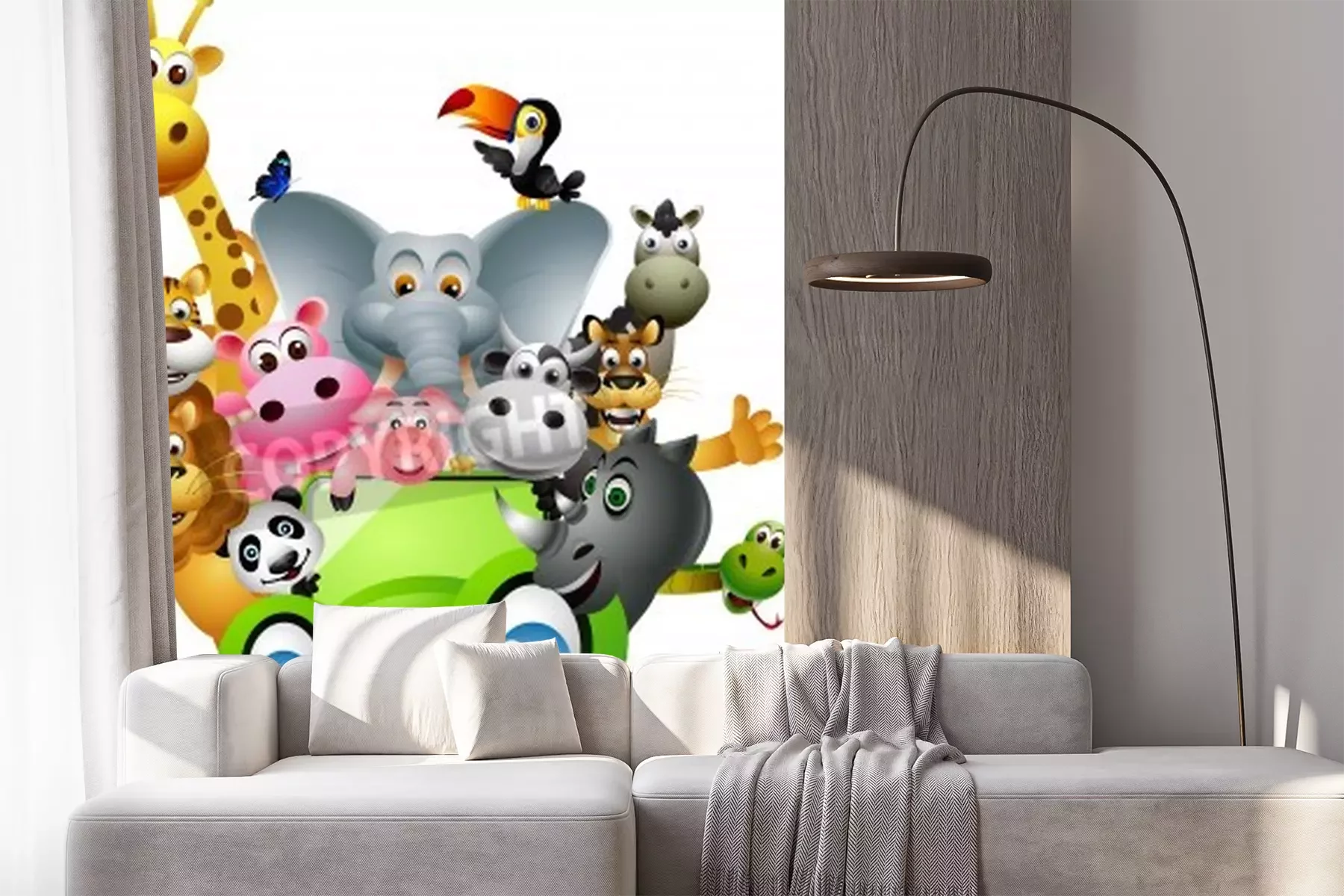 Sticker lustiges Tierkarikatur im grünen Auto eingestellt