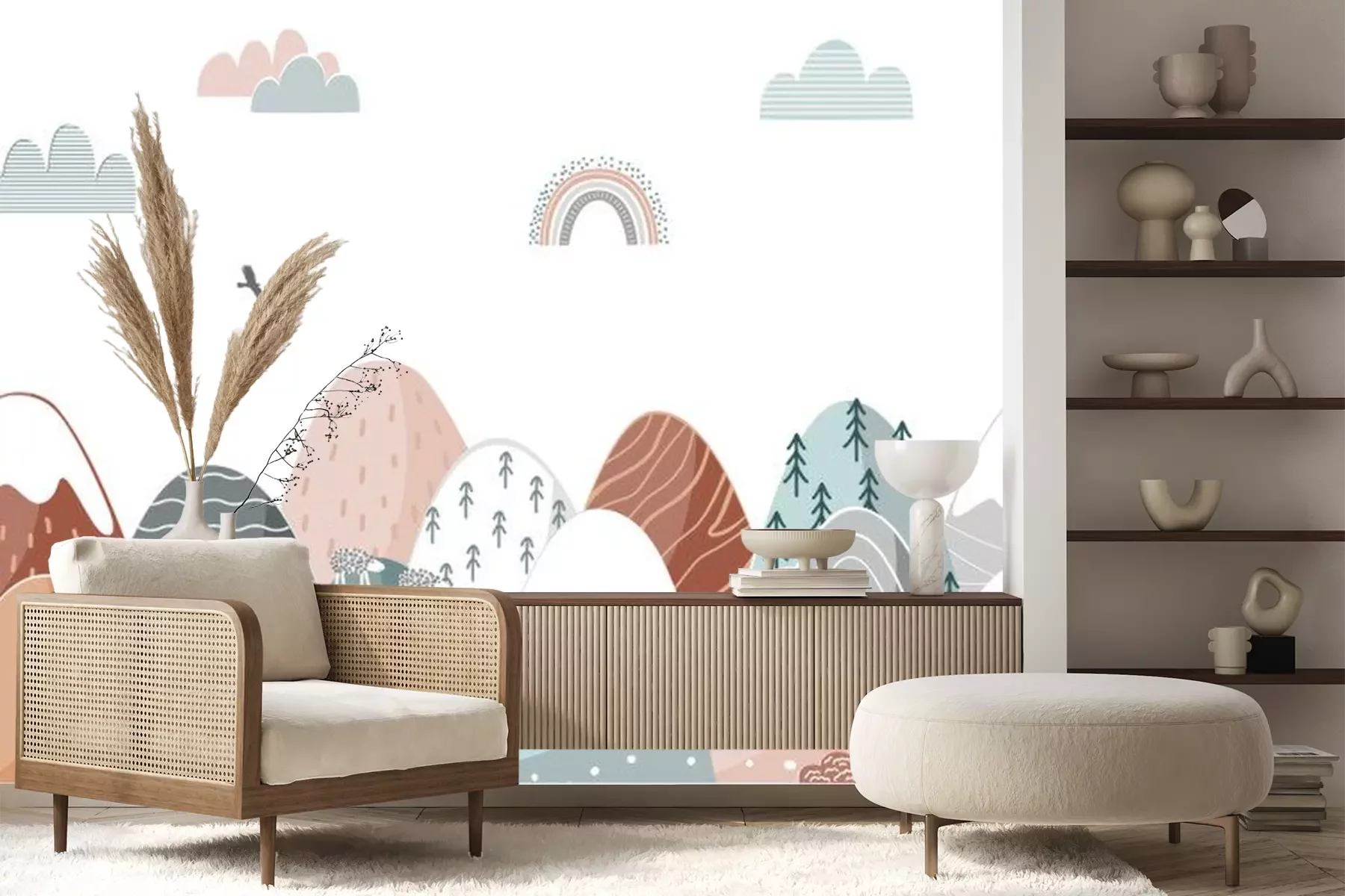 Sticker Märchenhafte Berglandschaft im skandinavischen Stil