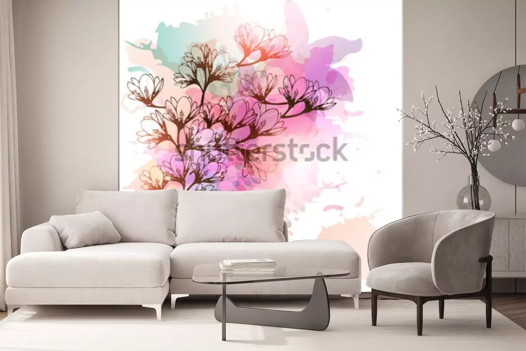 Sticker Magnolien auf mehrfarbigem Hintergrund