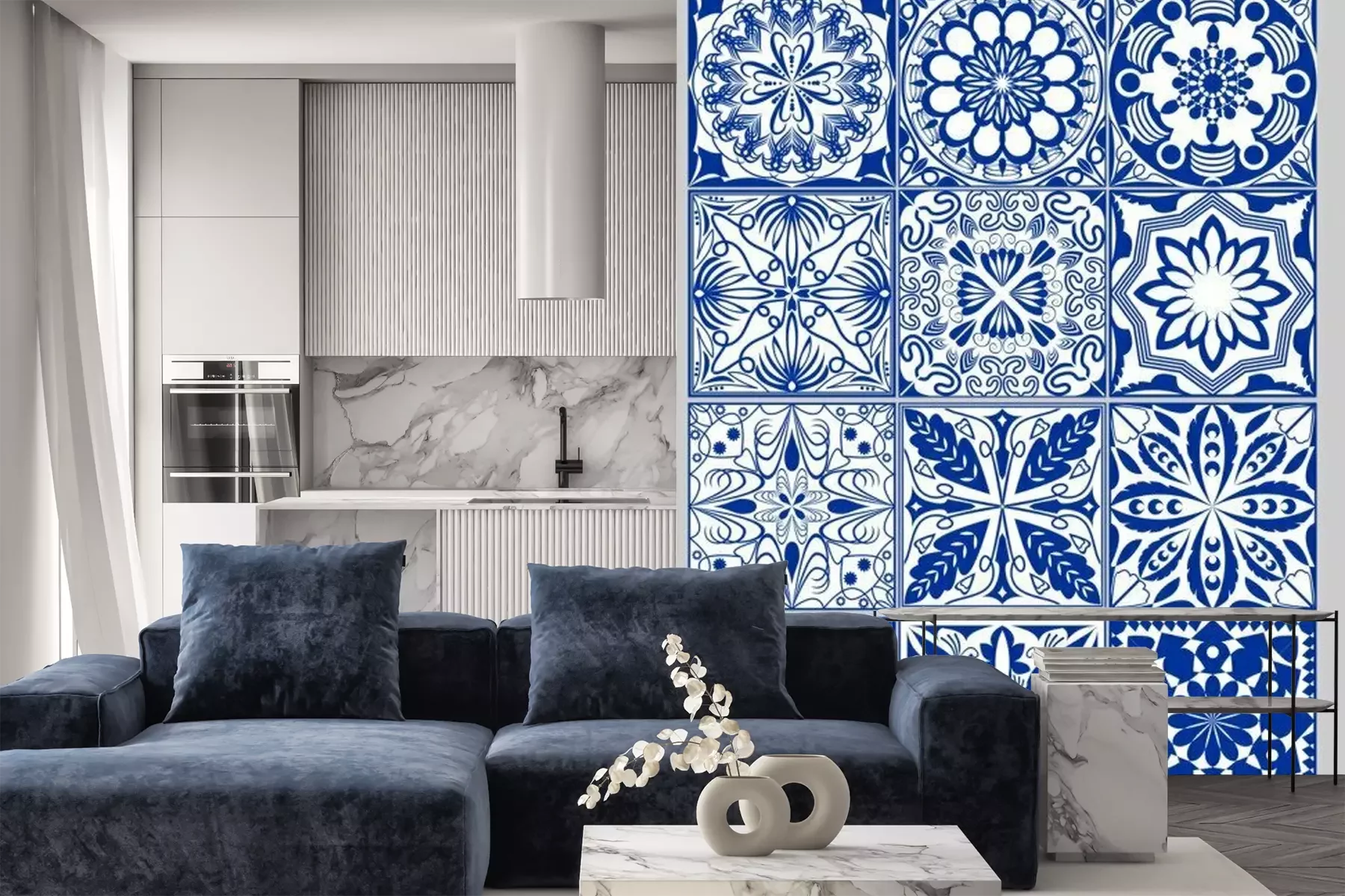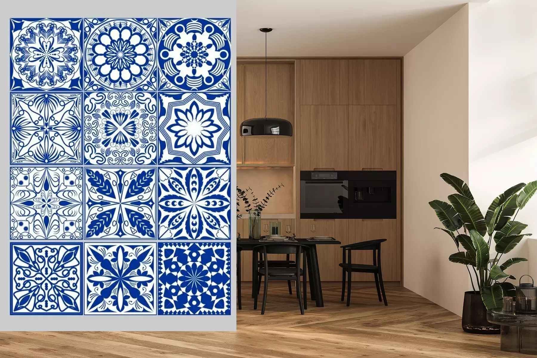 Sticker Majolica Keramikfliesen Mega-Set, blau und weiß Azulejos, original portugiesischen und spanischen Dekor