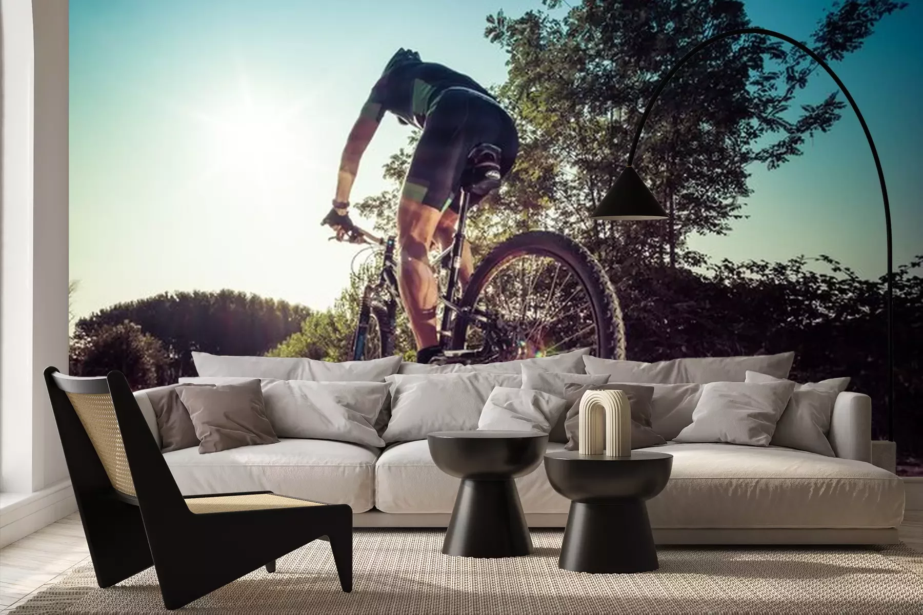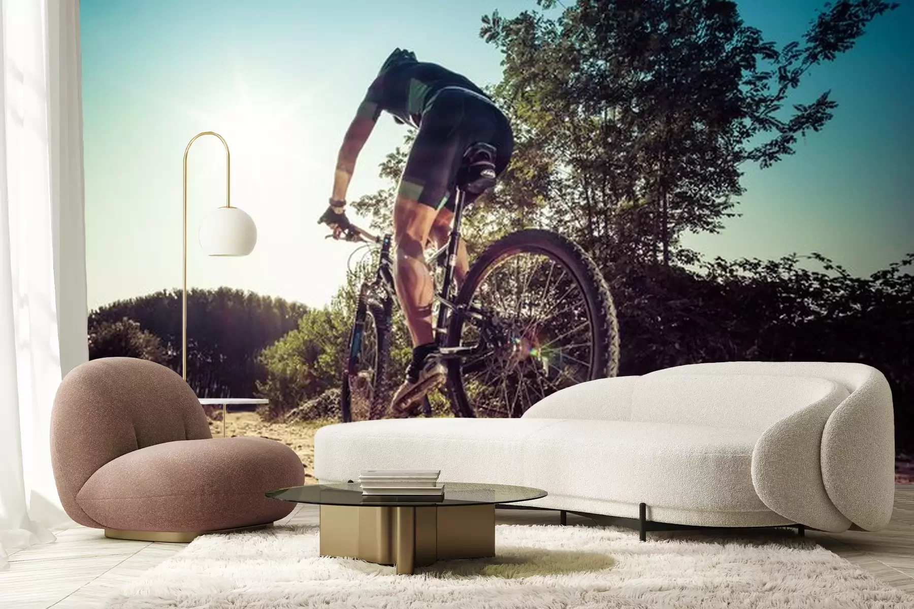 Sticker Man Reiten auf einer schmutzigen Straße auf dem Mountainbike