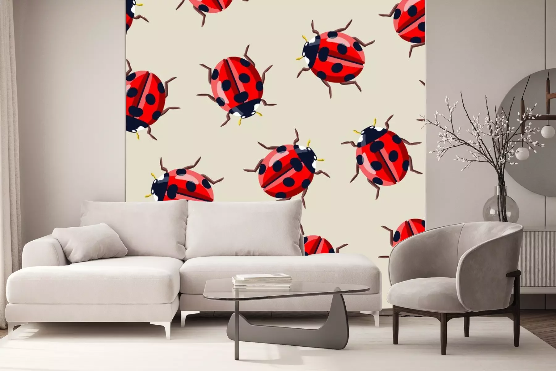 Sticker Marienkäfer auf beigefarbenem Hintergrund