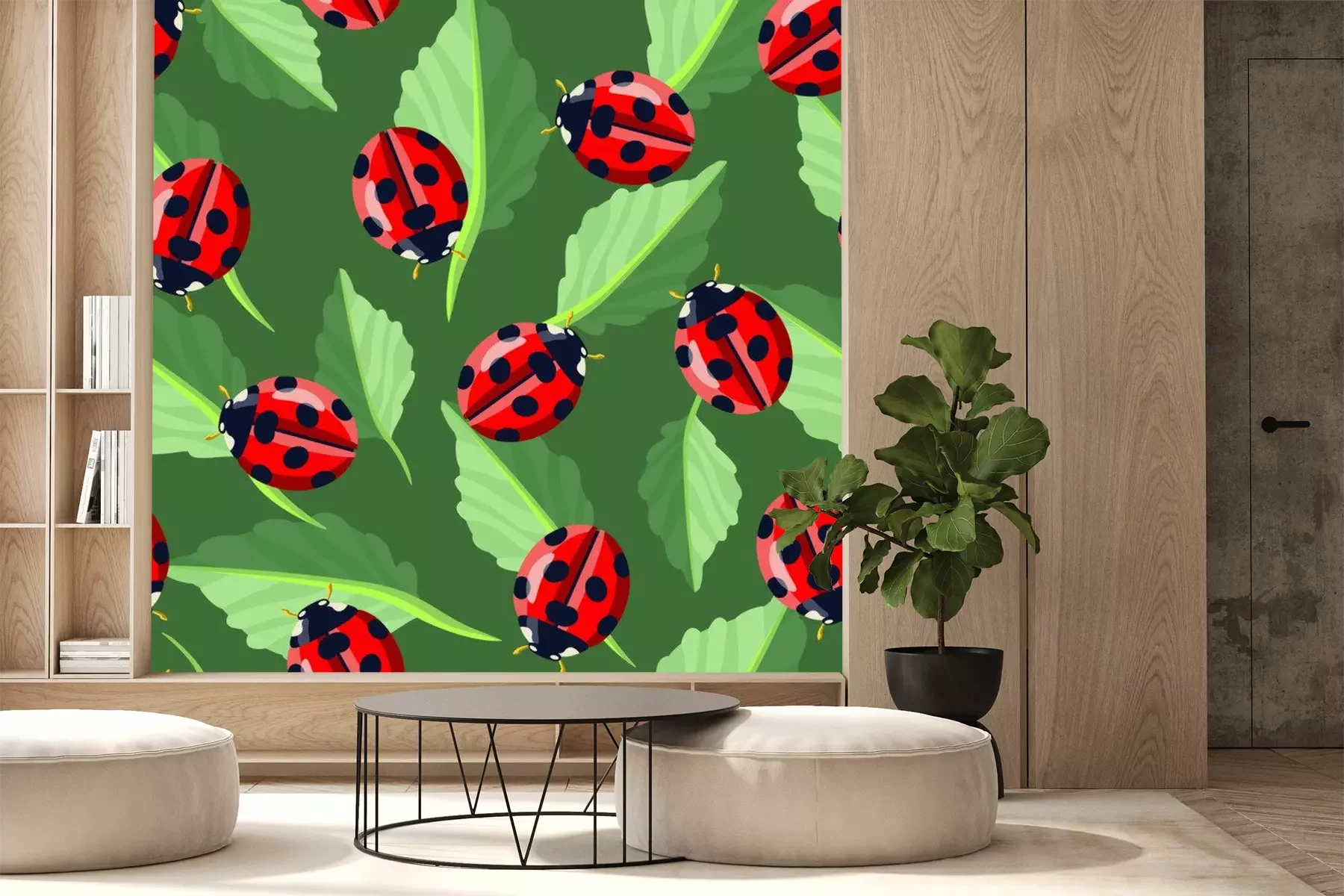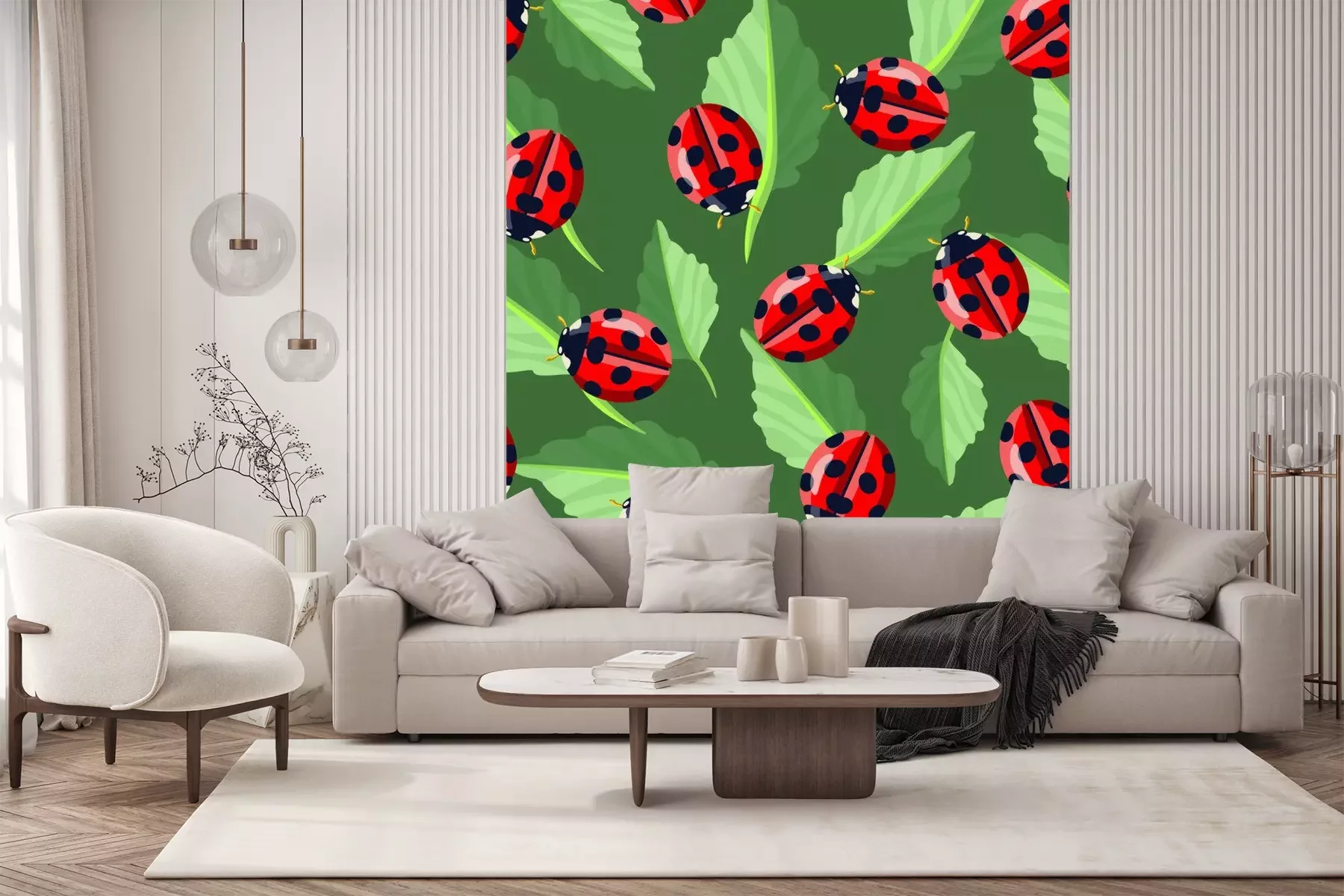 Sticker Marienkäfer auf grünem Blätter-Hintergrund