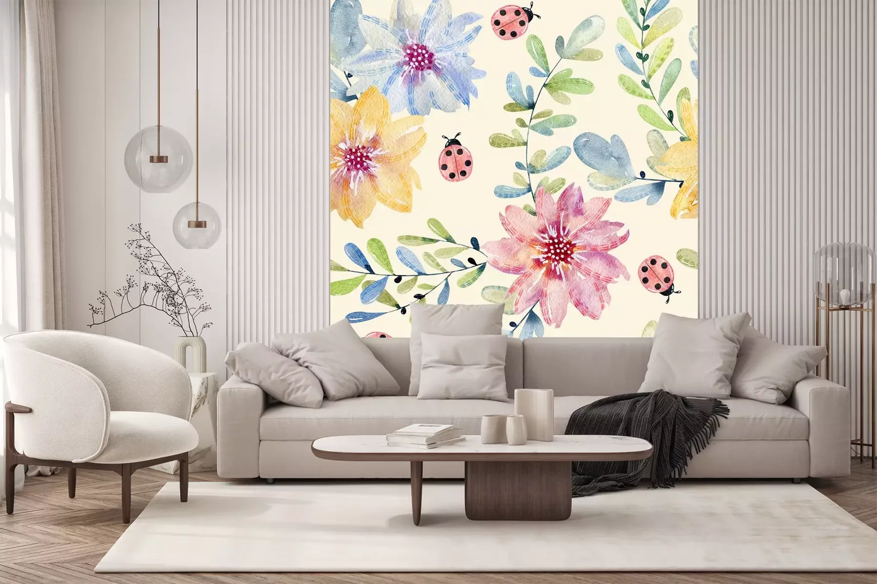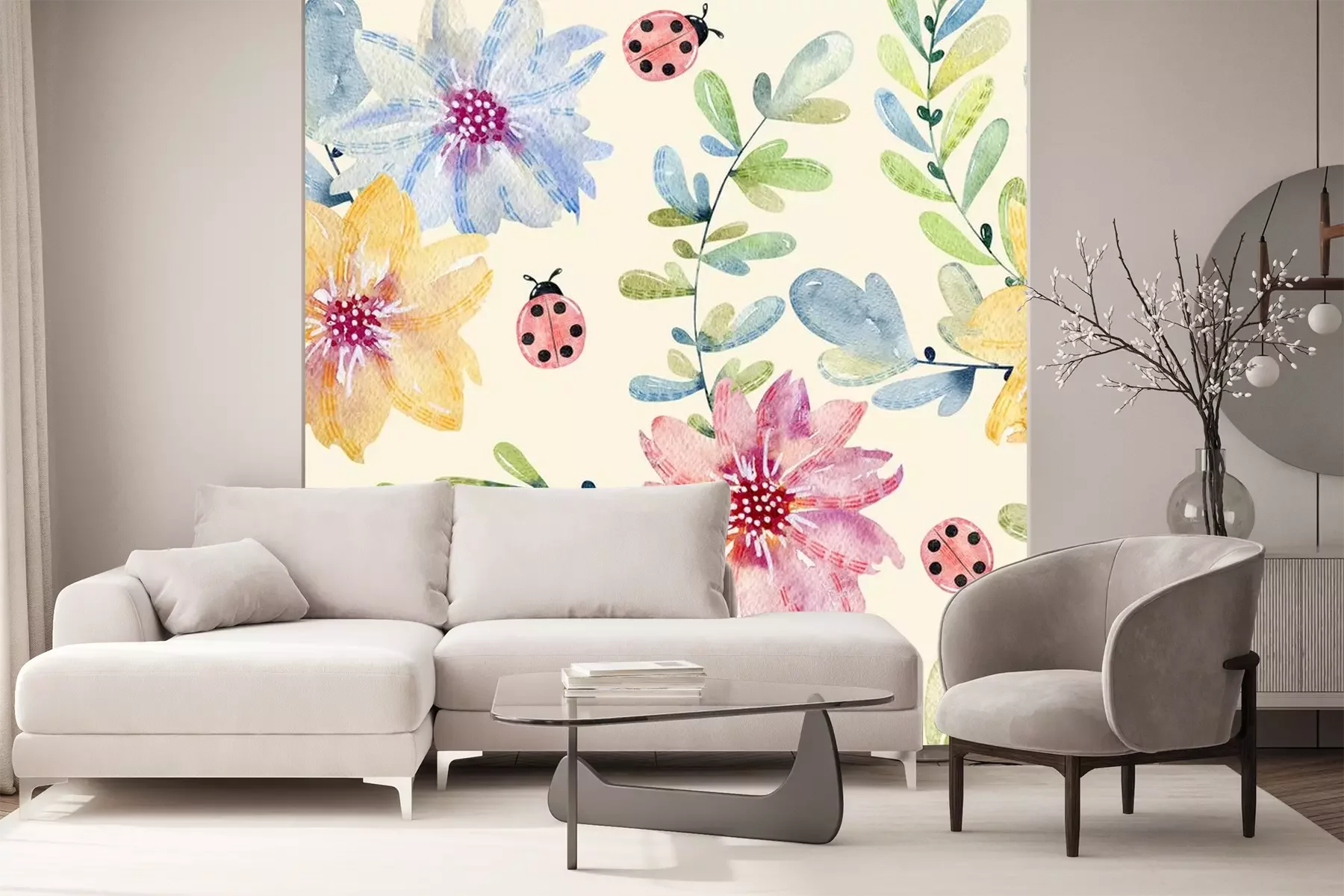 Sticker Marienkäfer inmitten von bunten Aquarell-Blumen