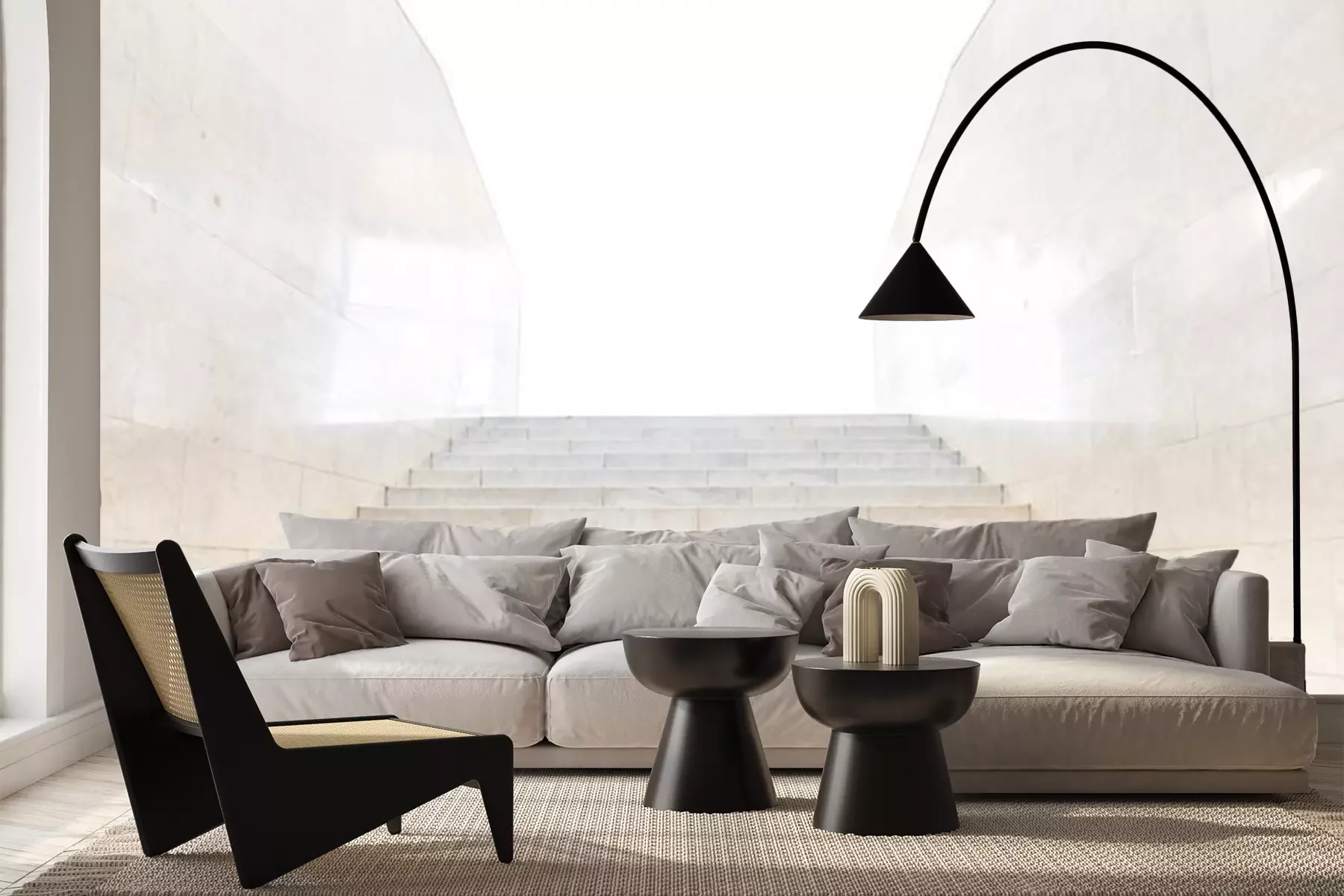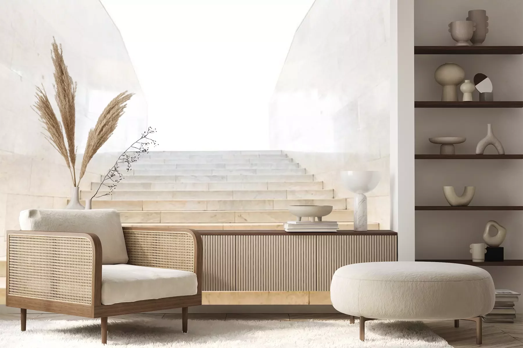 Sticker Marmortreppenhaus mit Treppen in der abstrakten Luxusarchitektur lokalisiert auf weißem Hintergrund