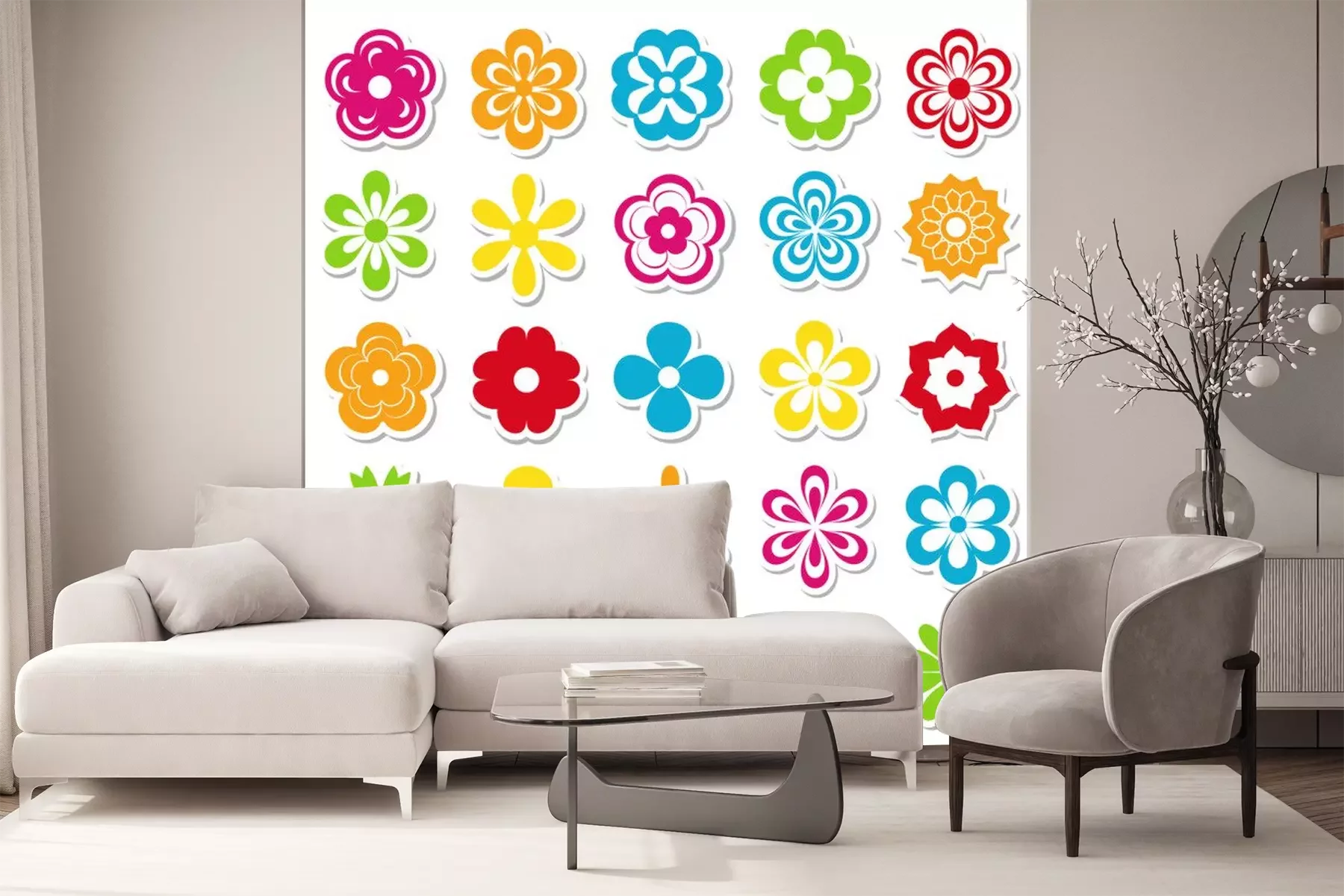 Sticker Mehrfarbige florale Muster mit verschiedenen Formen
