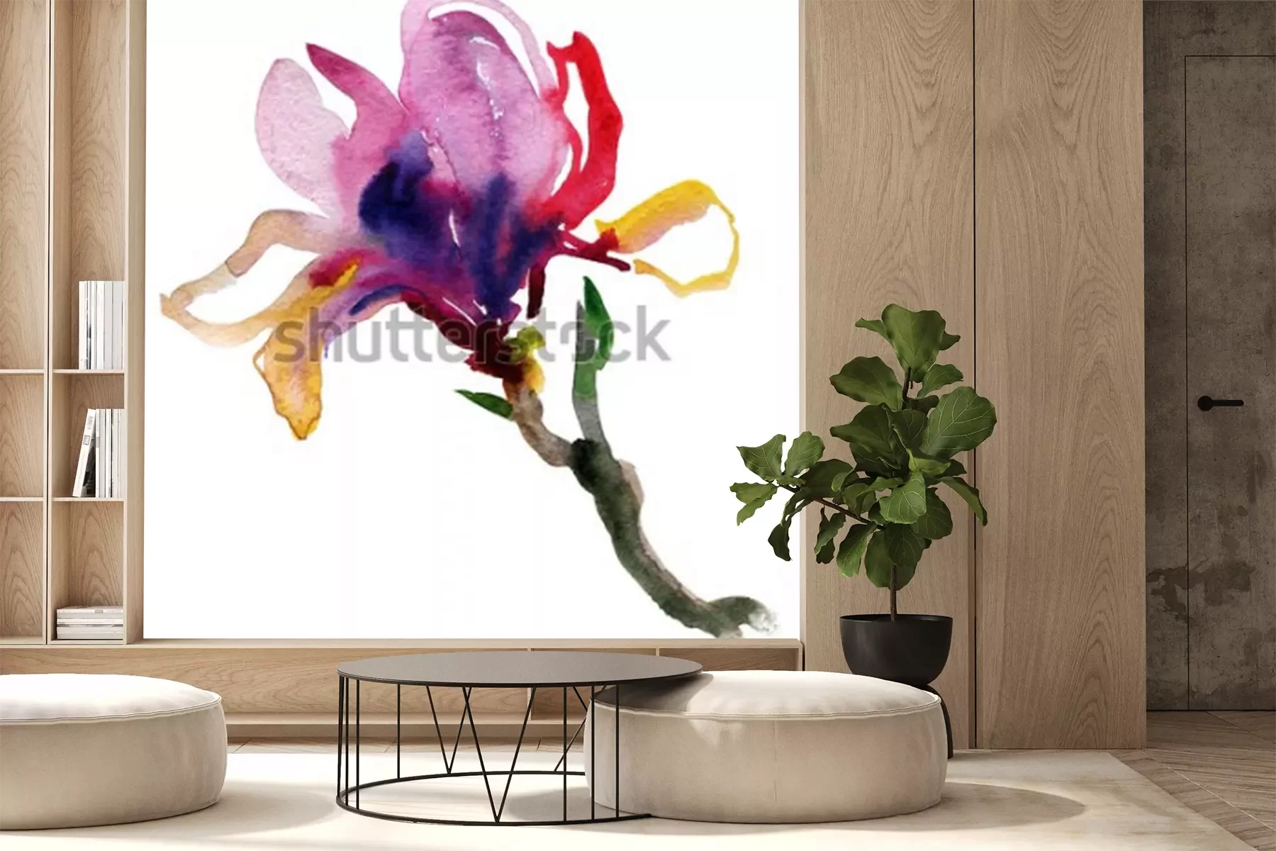 Sticker Mehrfarbige Magnolie mit Farben bemalt