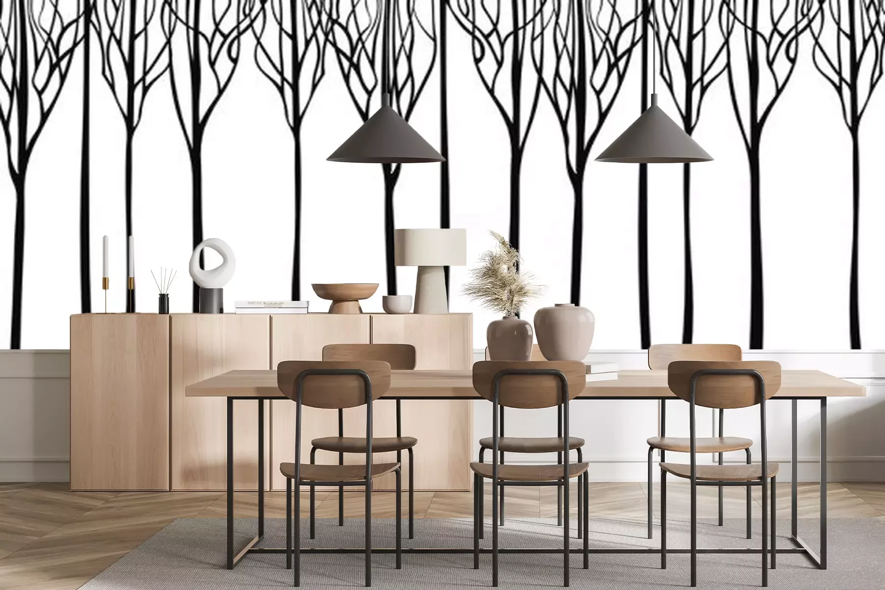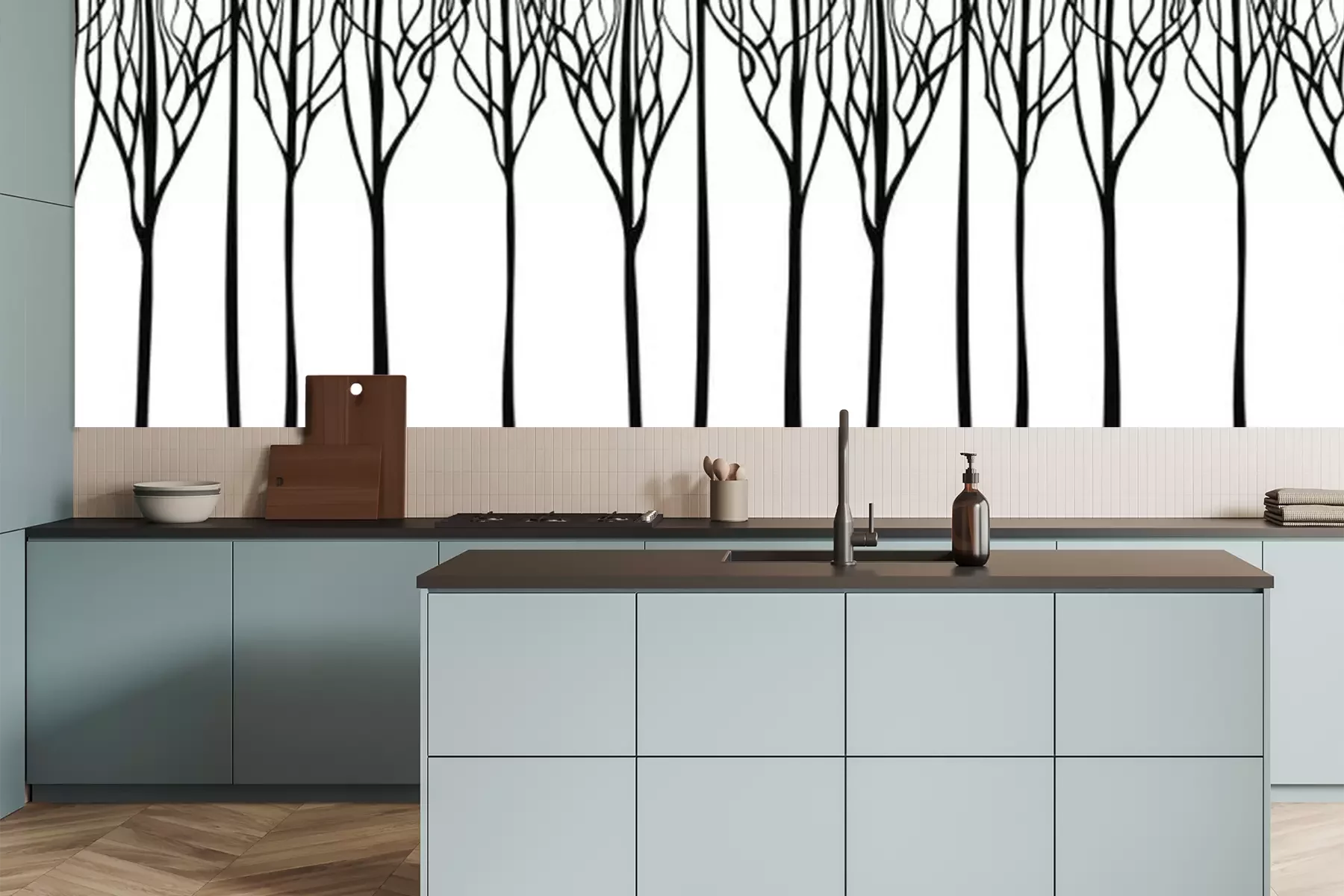 Sticker Minimalistische Grafik mit blattlosen Bäumen