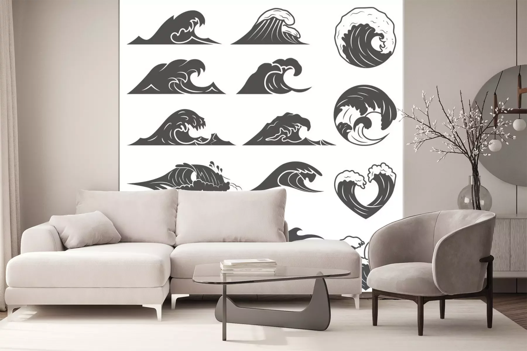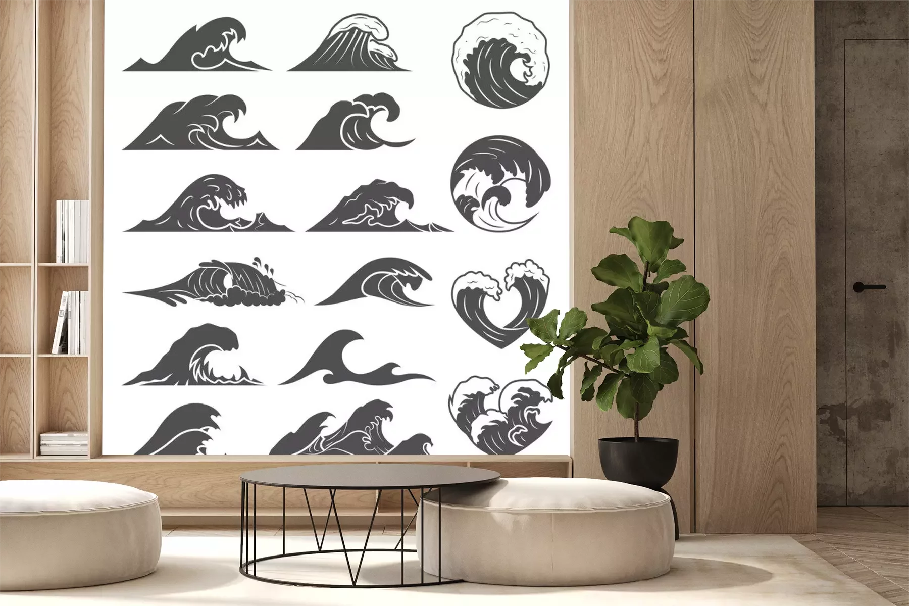 Sticker Minimalistische Zeichnung mit Meereswellen