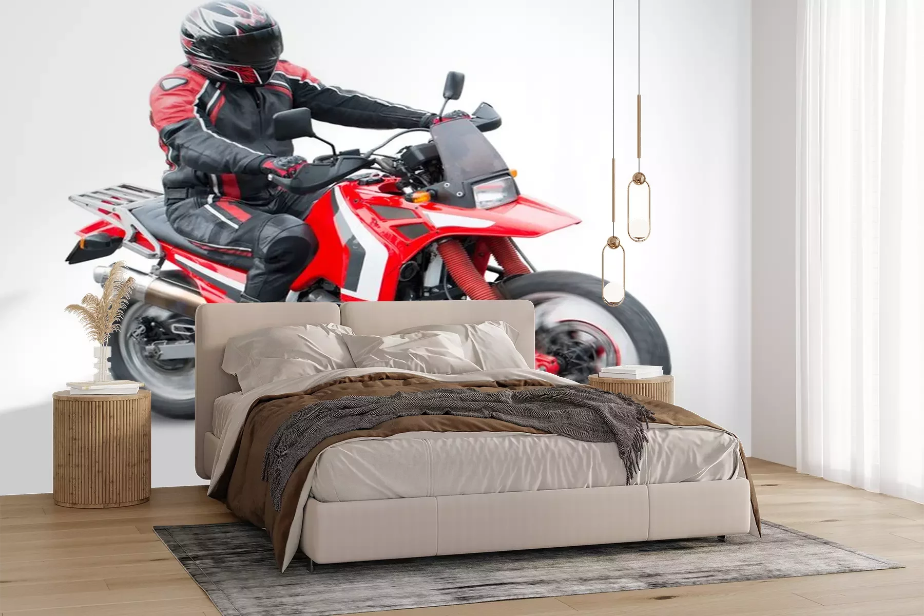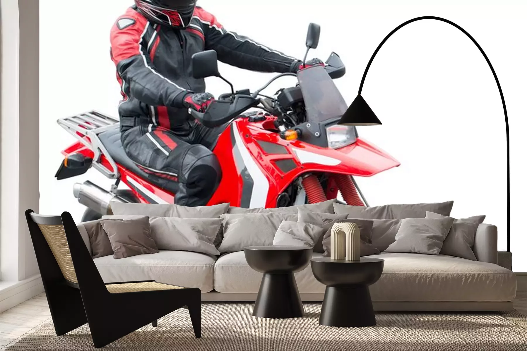 Motorradfahrer im Wald StraßeProblemlose Lieferung durch vertrauenswürdige Spediteure