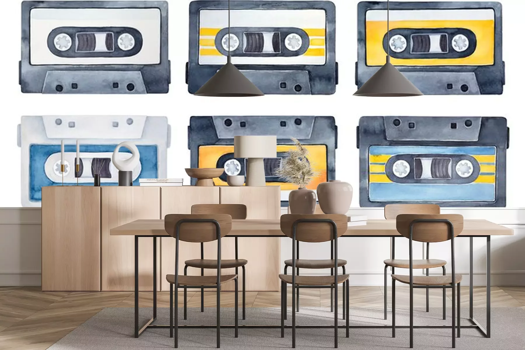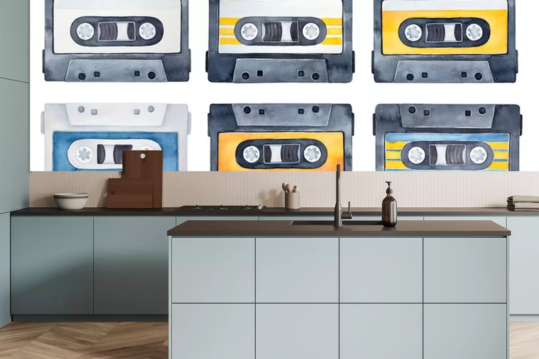 Sticker Musik Symbole der 70er Jahre Kompaktkassetten