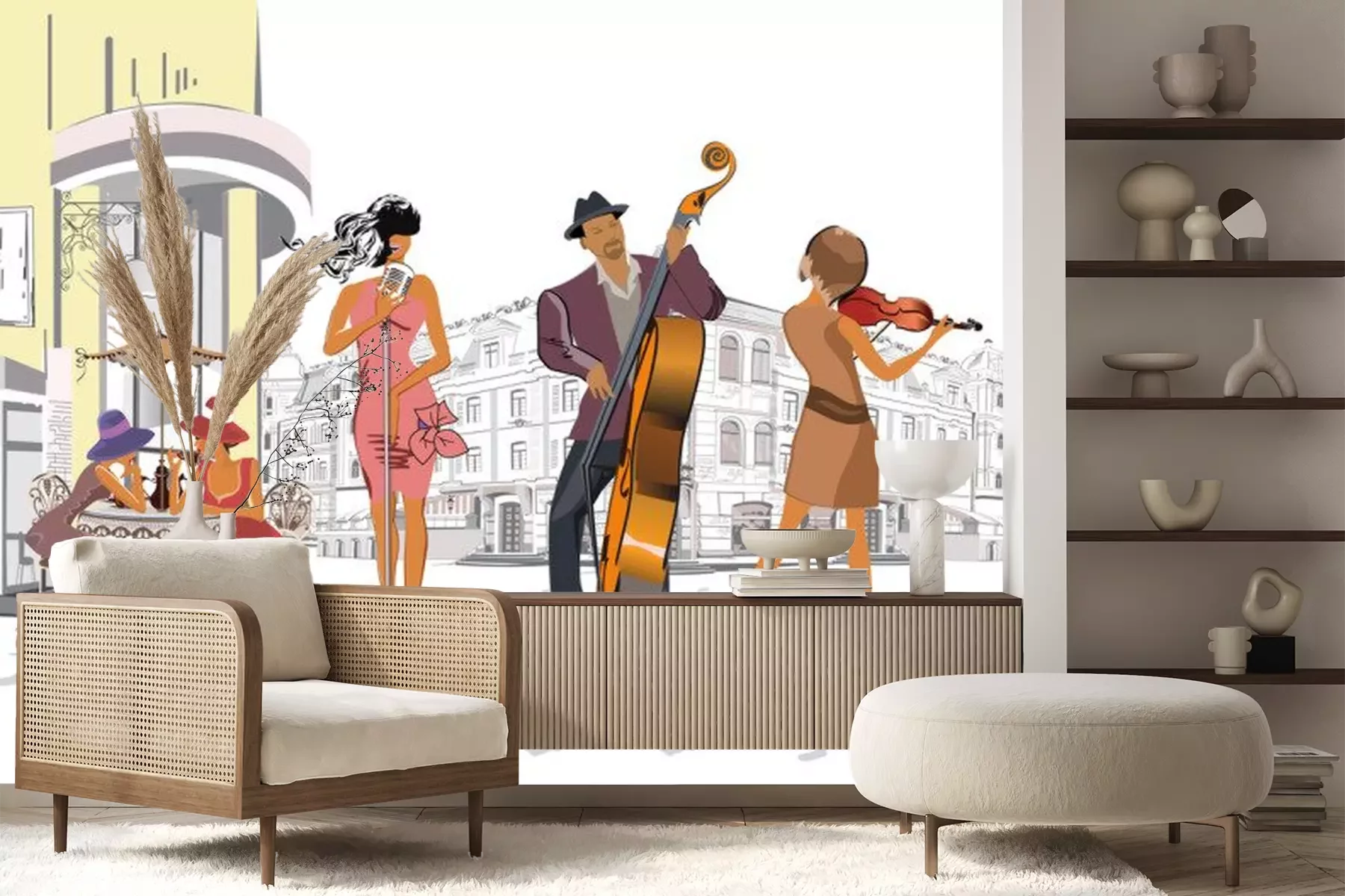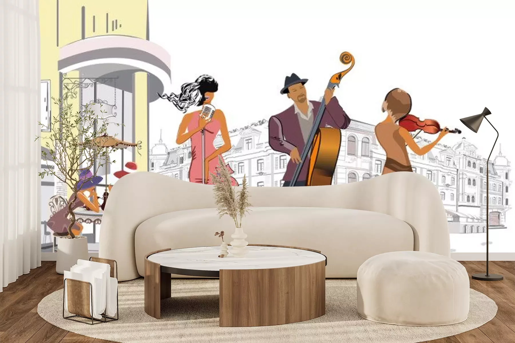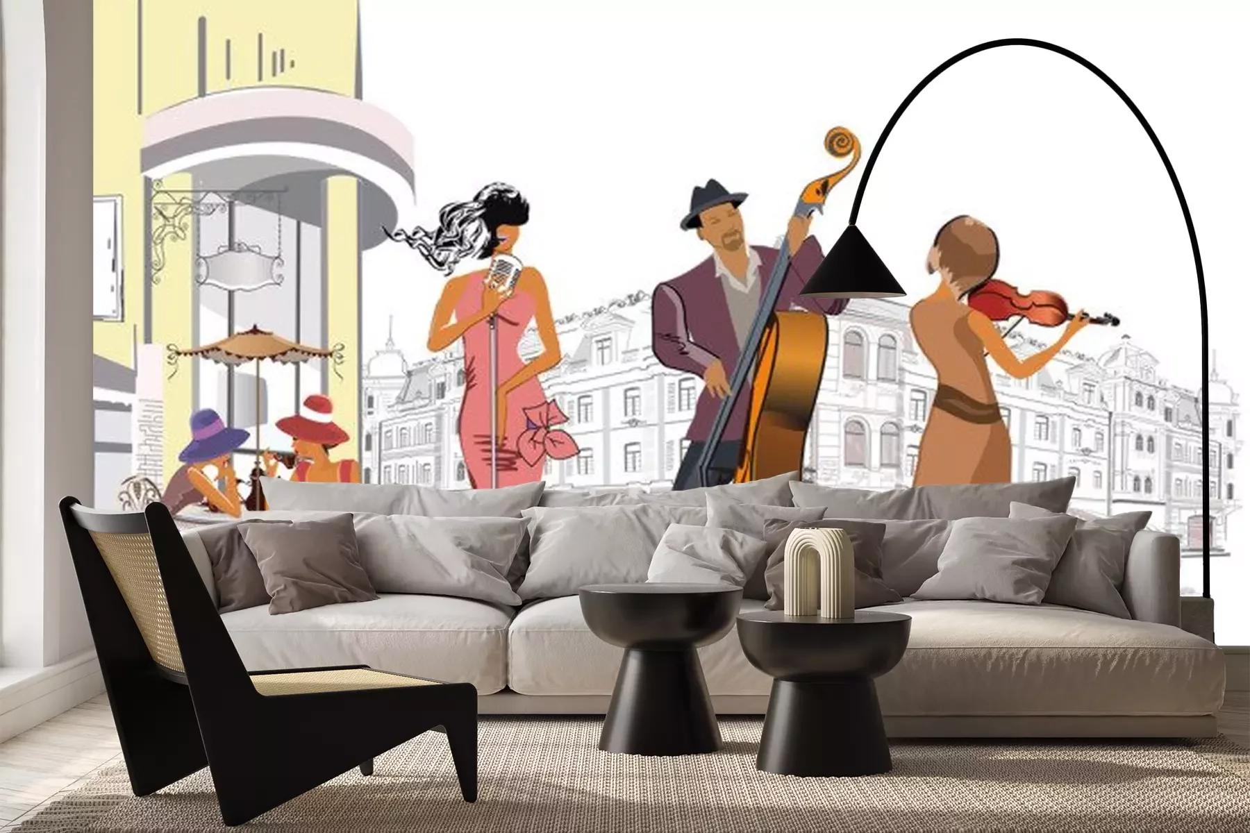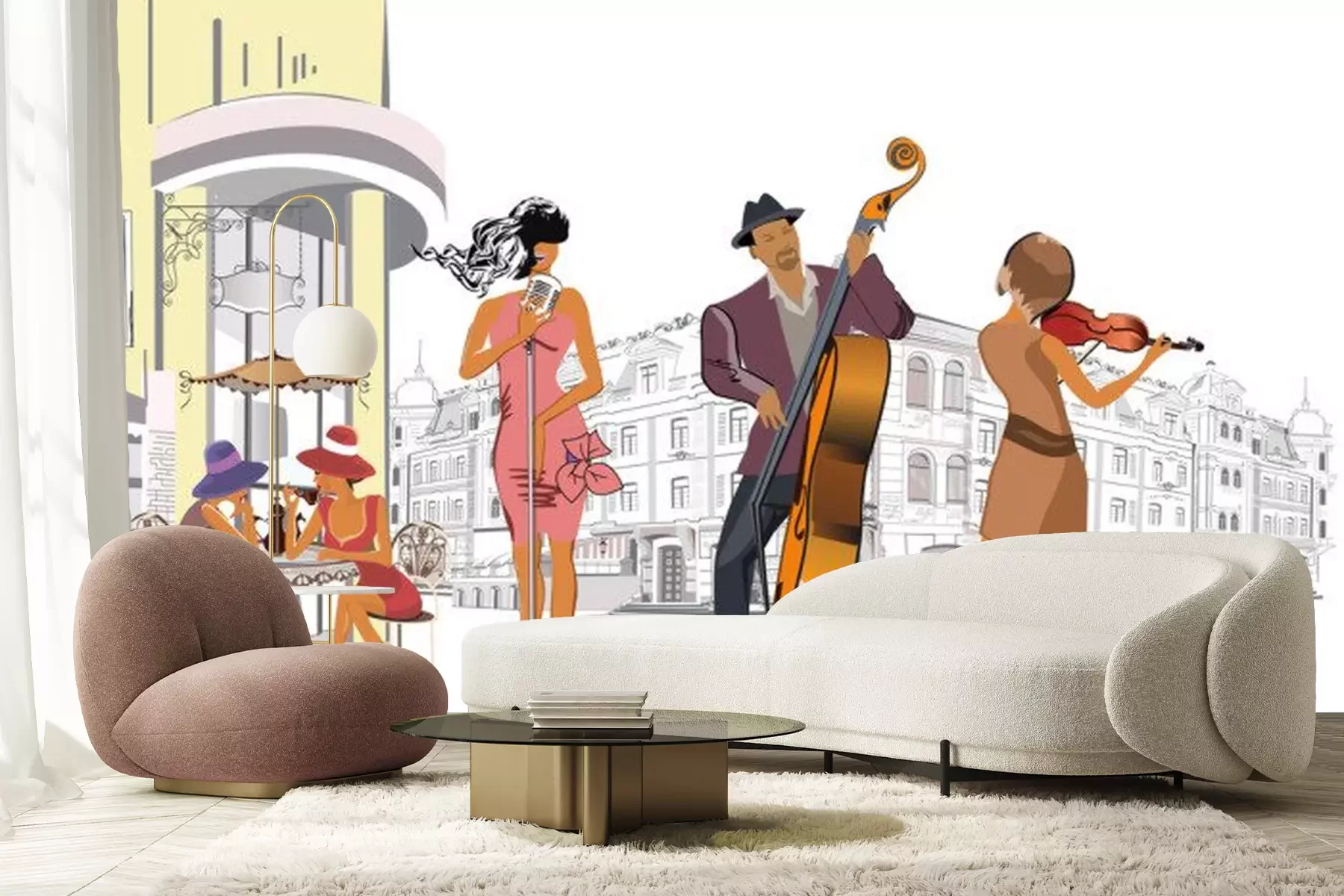 Sticker Musikband spielt für Kunden eines Cafés
