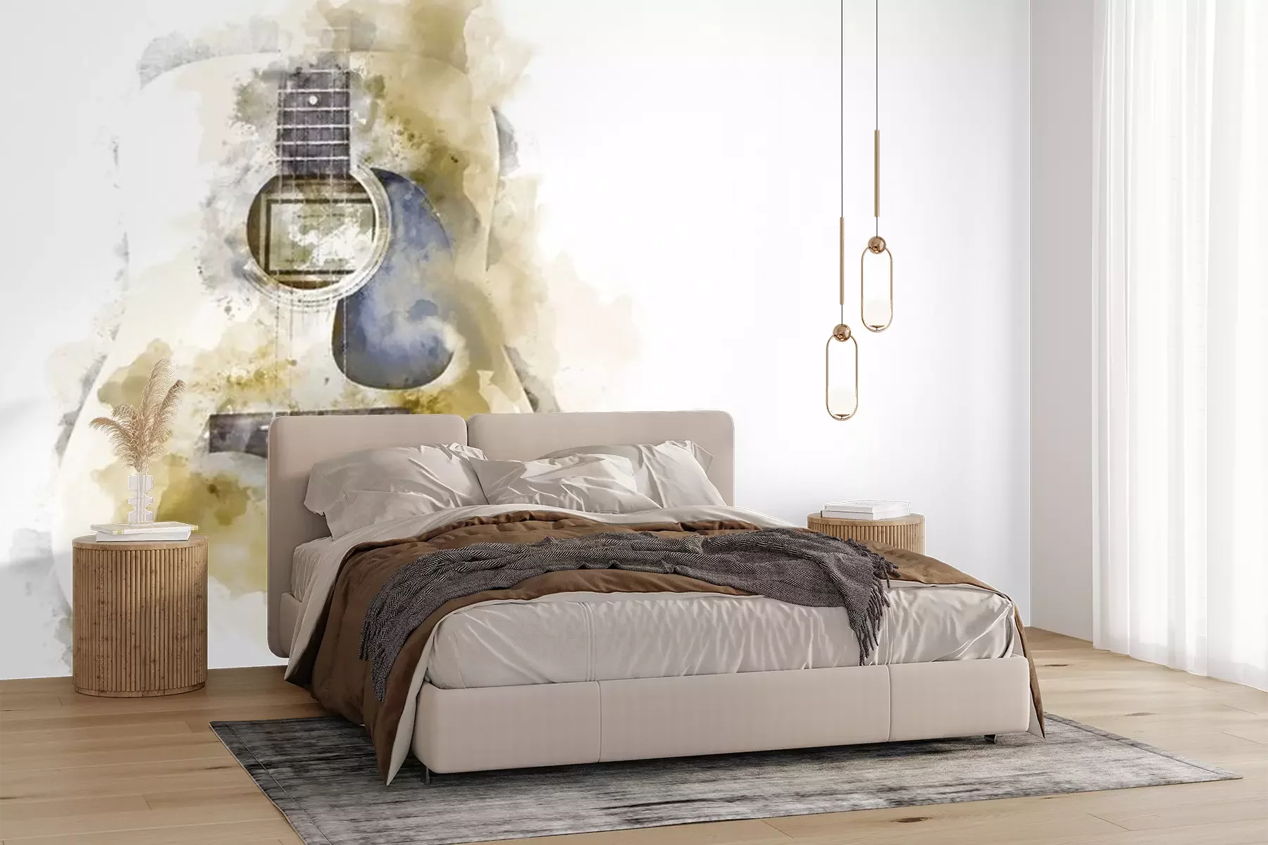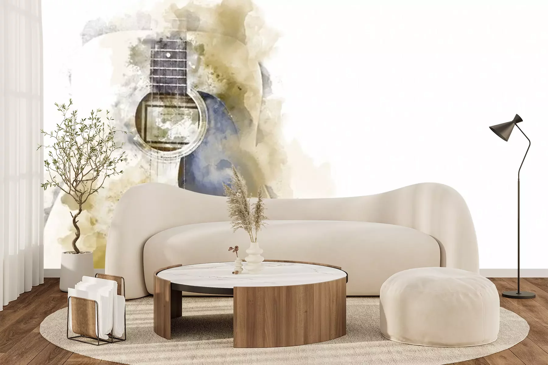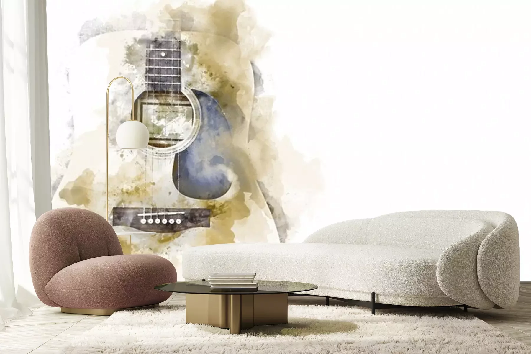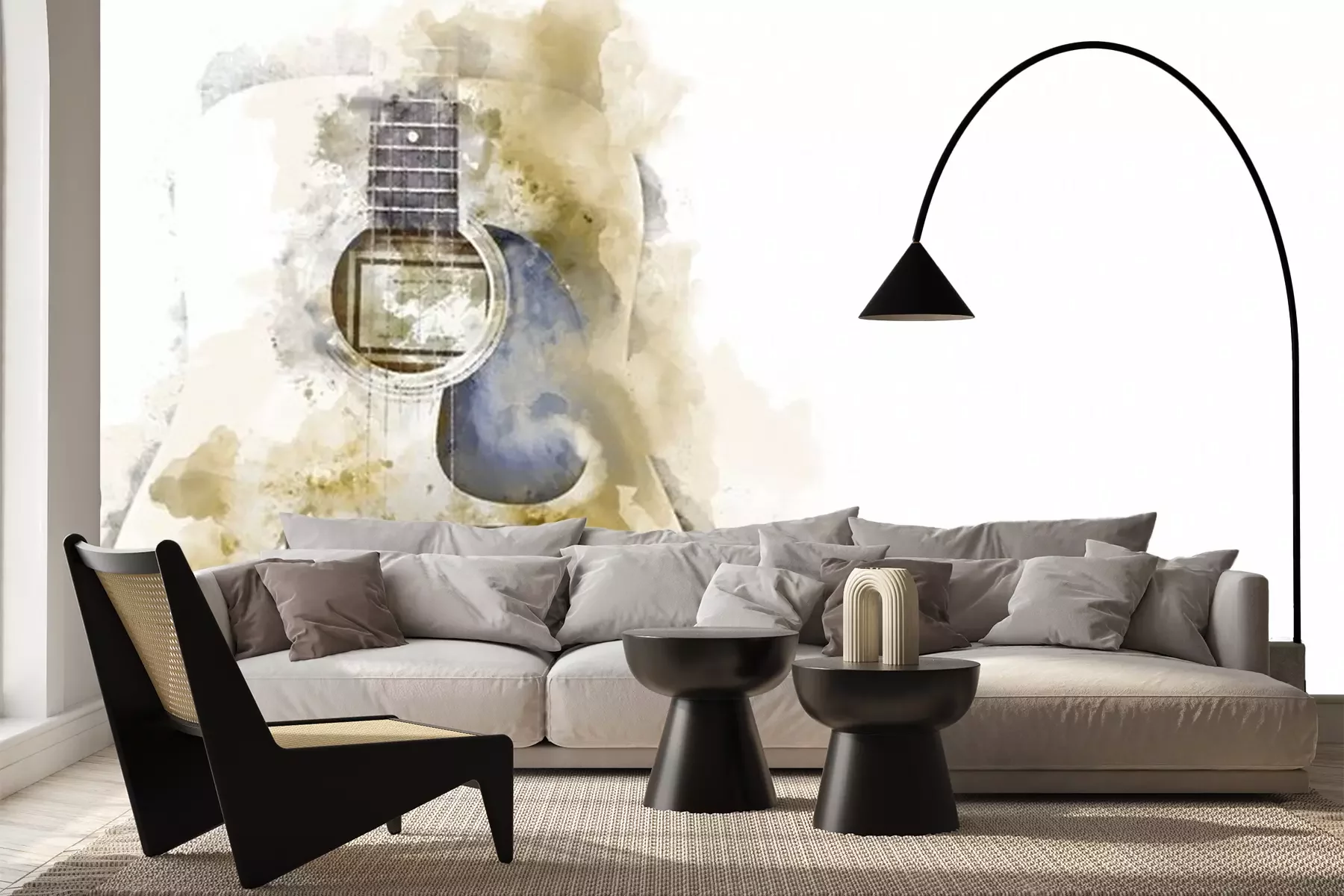 Sticker Musikinstrumente Akustikgitarre mit Aquarellfarben gemalt