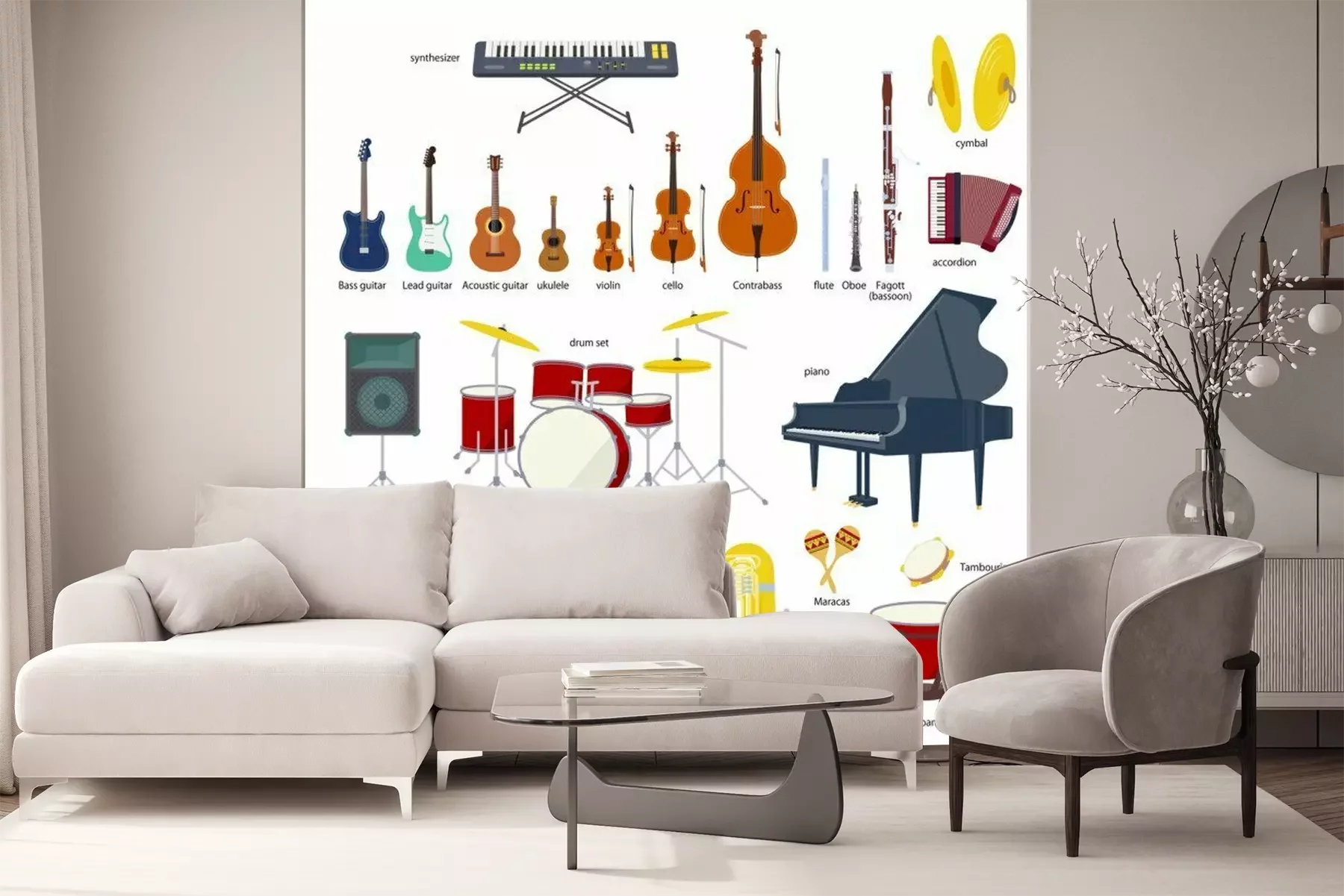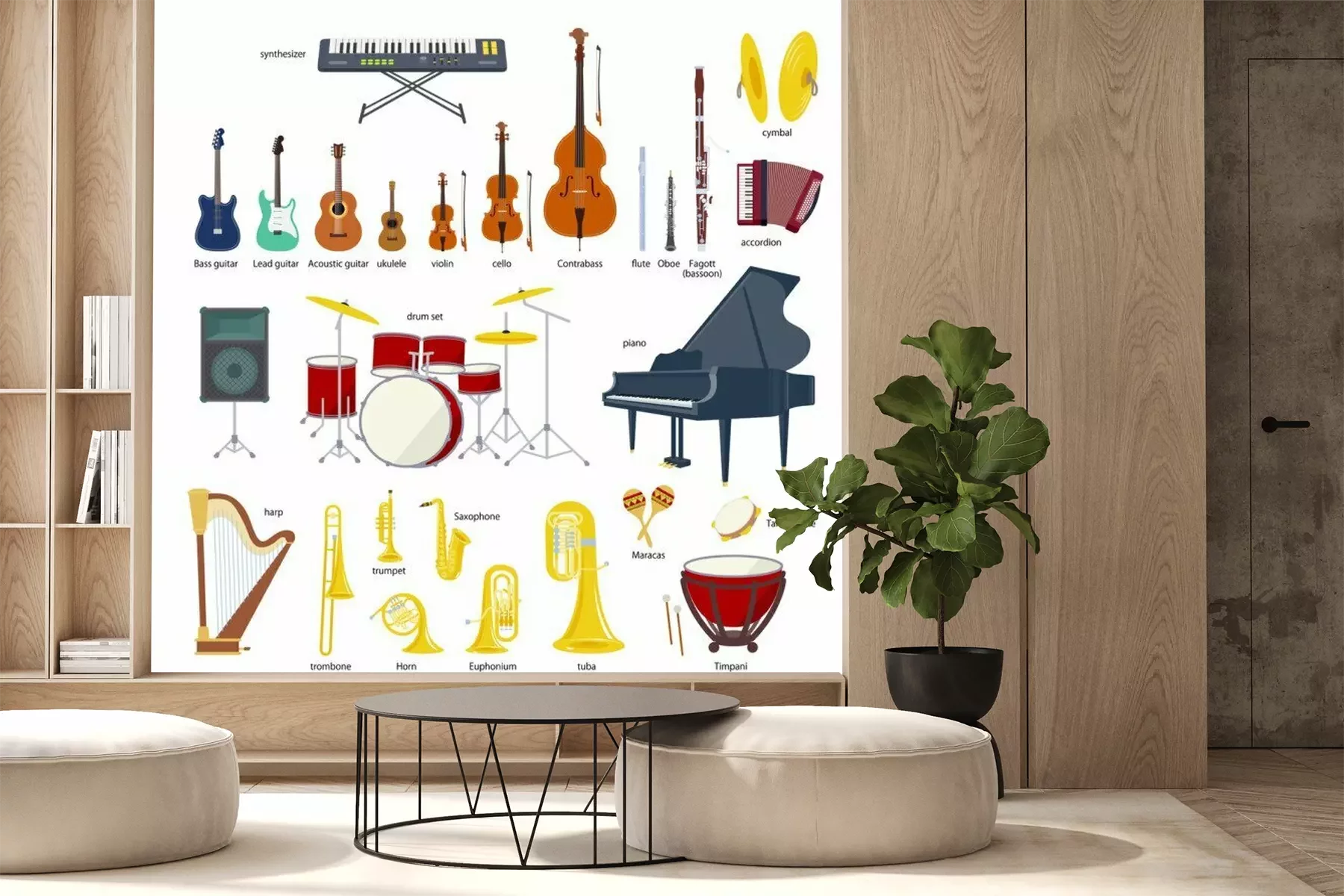 Sticker Musikinstrumente mit Beschriftungen pädagogische Grafik