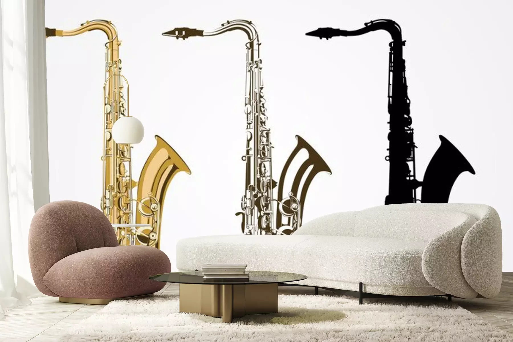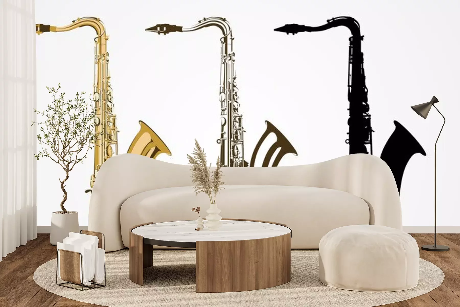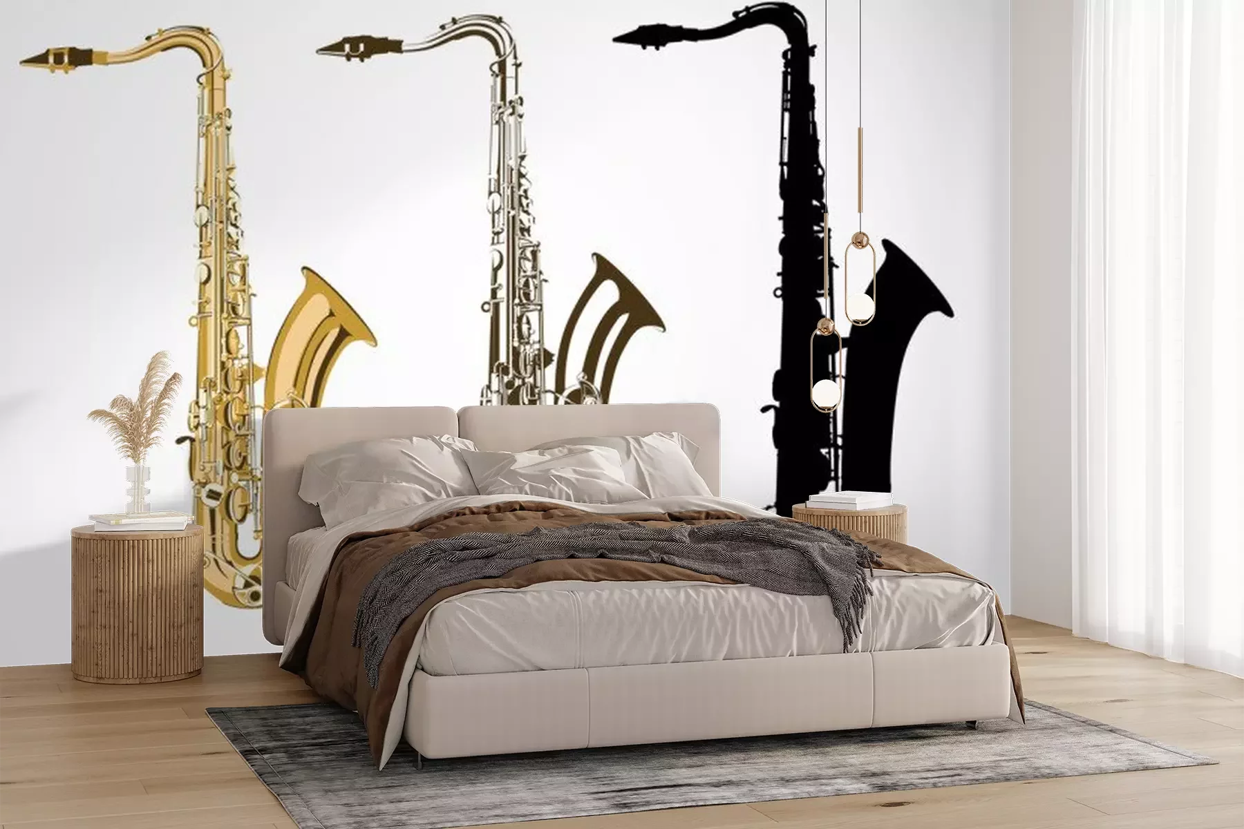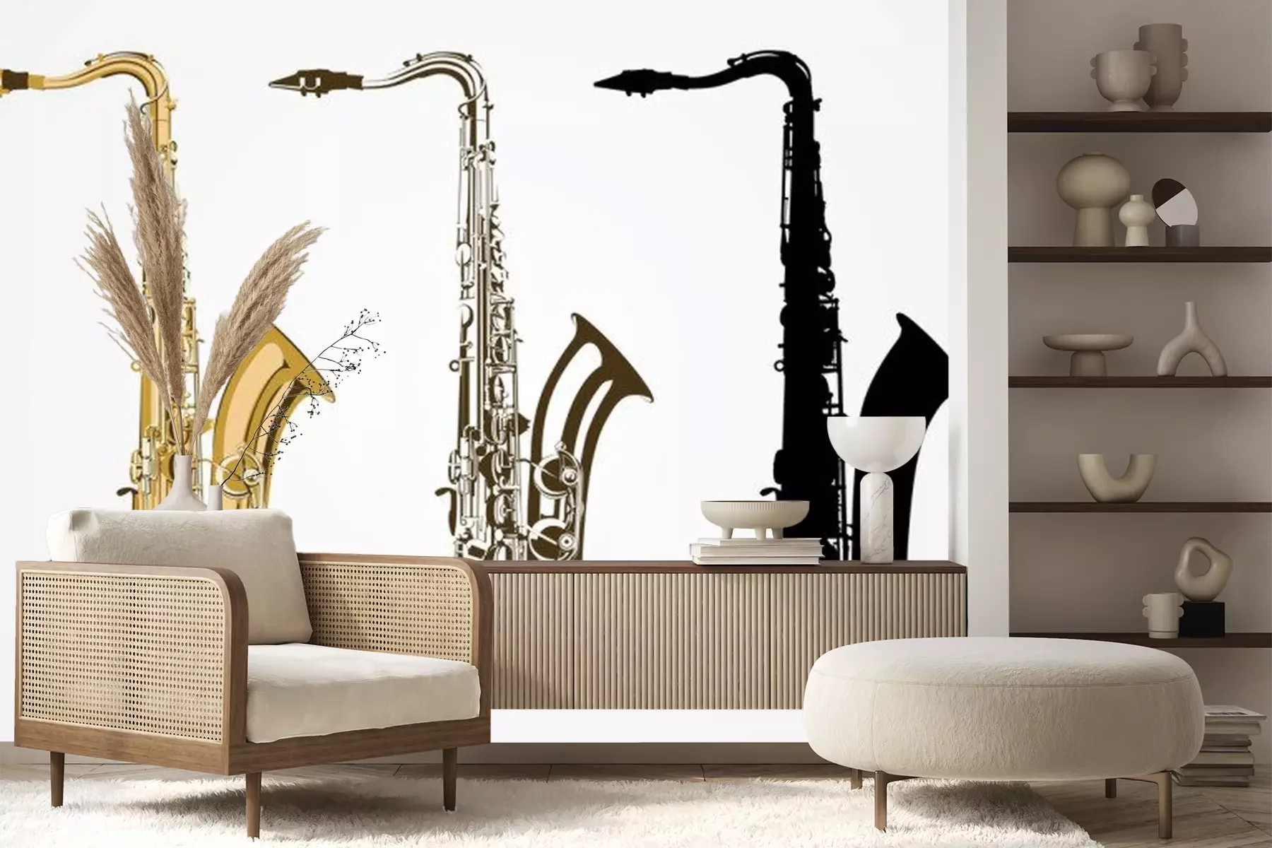 Sticker Musikinstrumente und drei Saxophone bunte Grafik