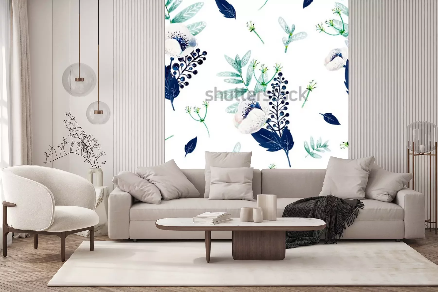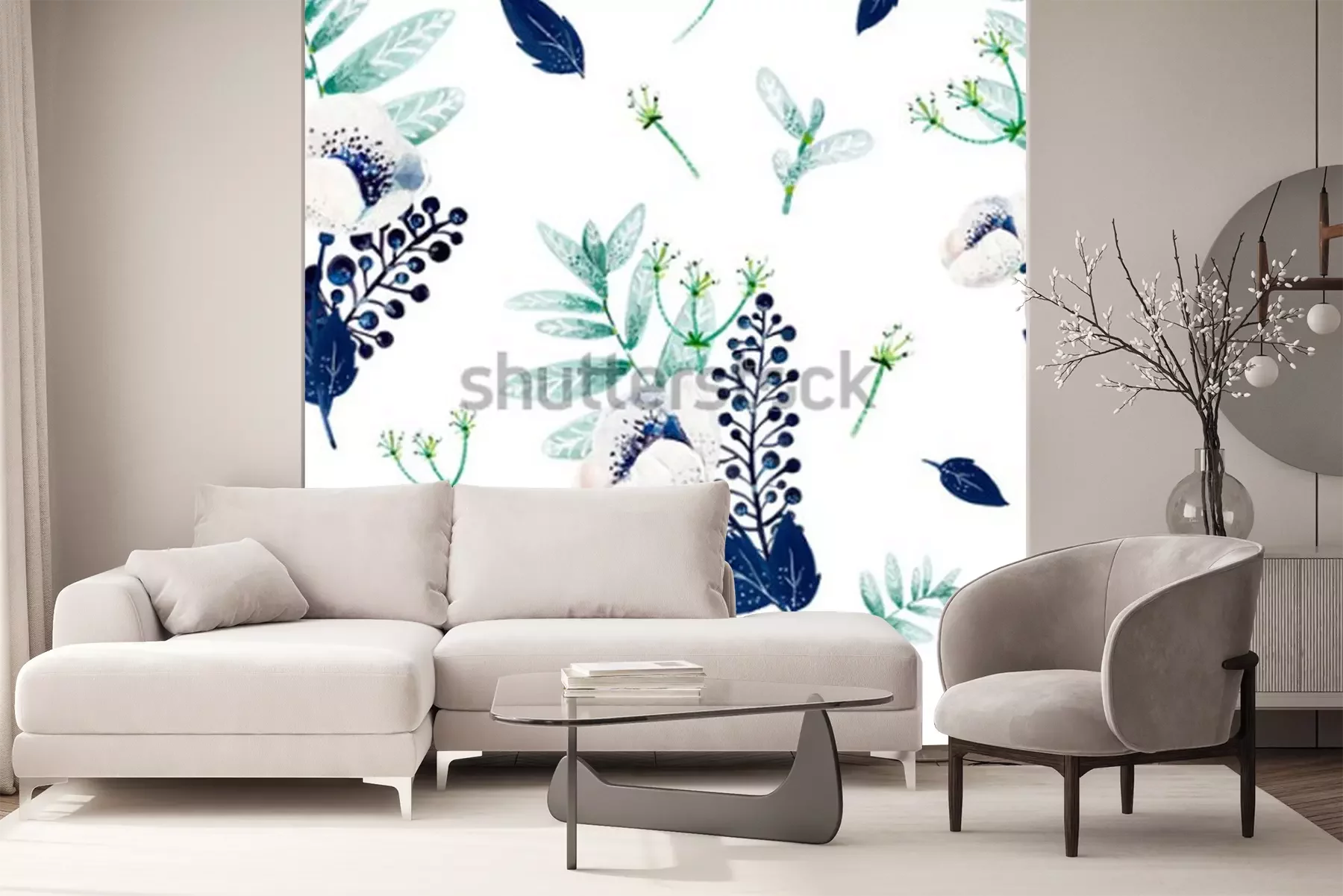 Sticker Muster mit Blumen in Blau und Grün