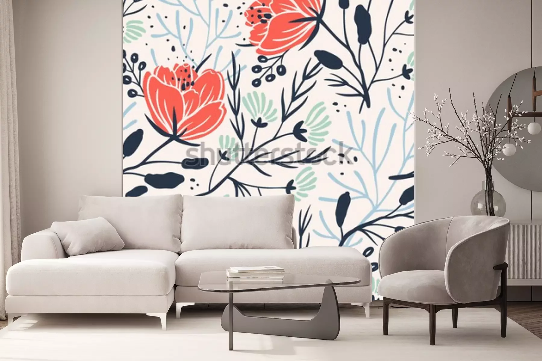 Sticker Muster mit lachsfarbenen Blumen