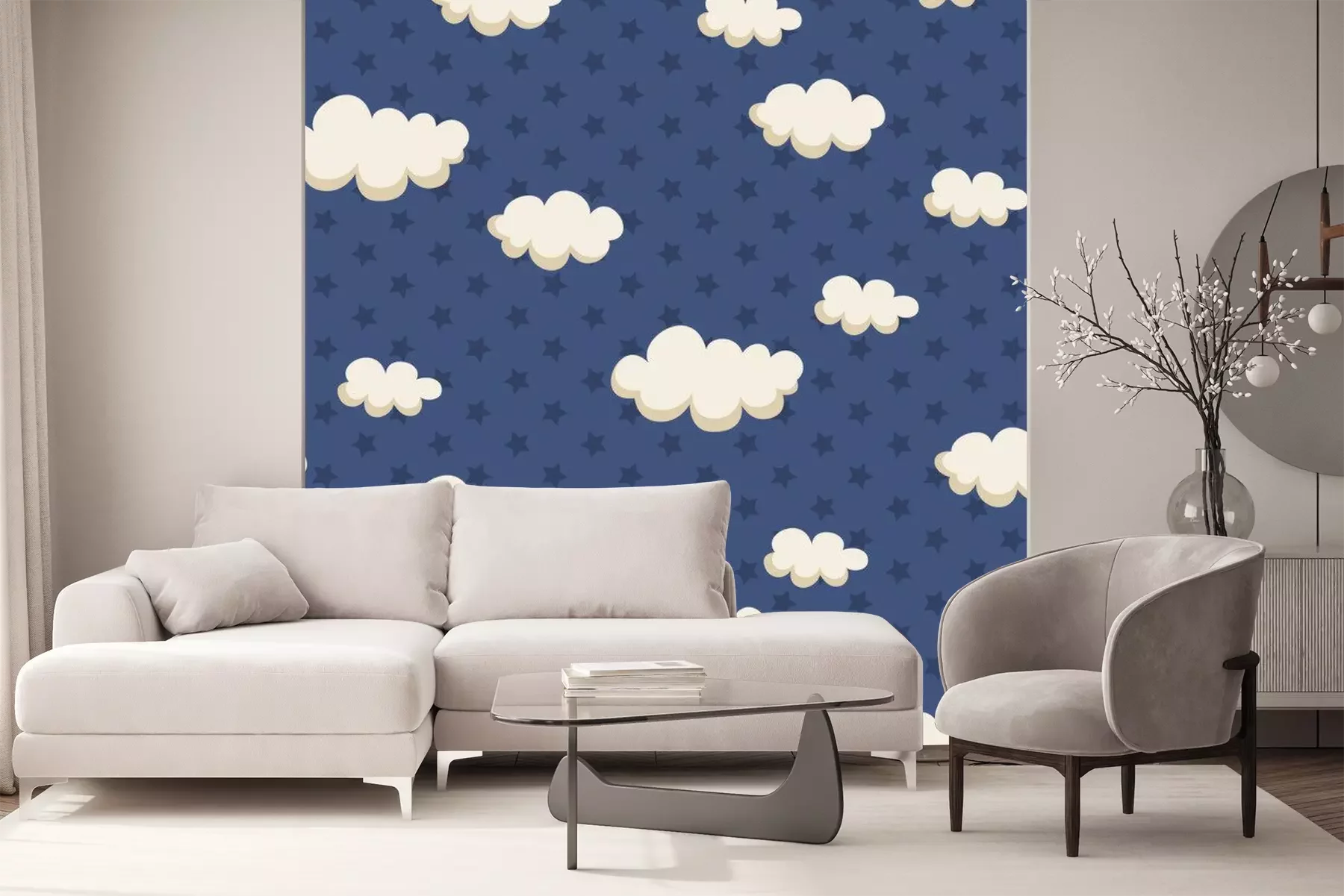 Sticker Muster mit Wolken und Sternen