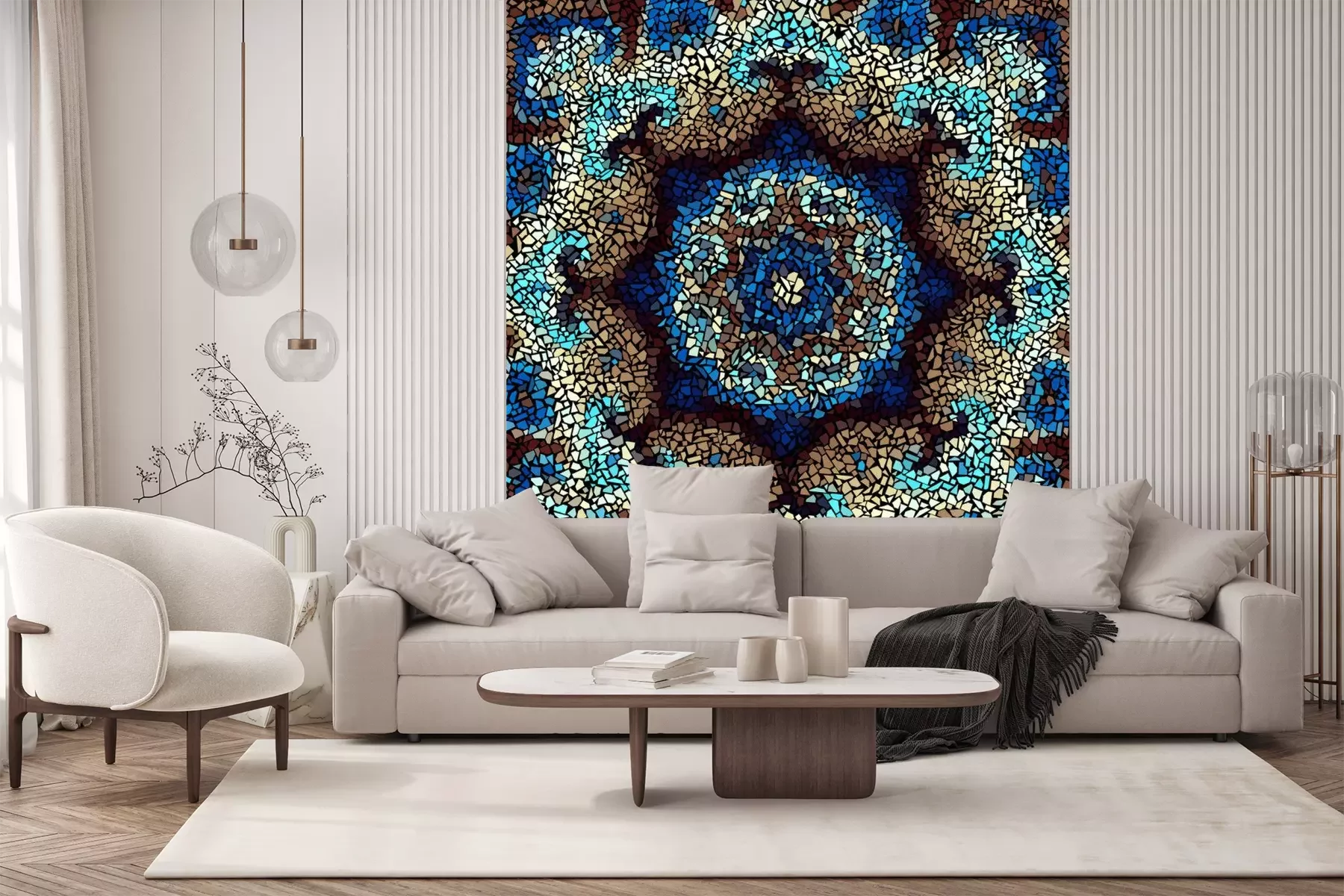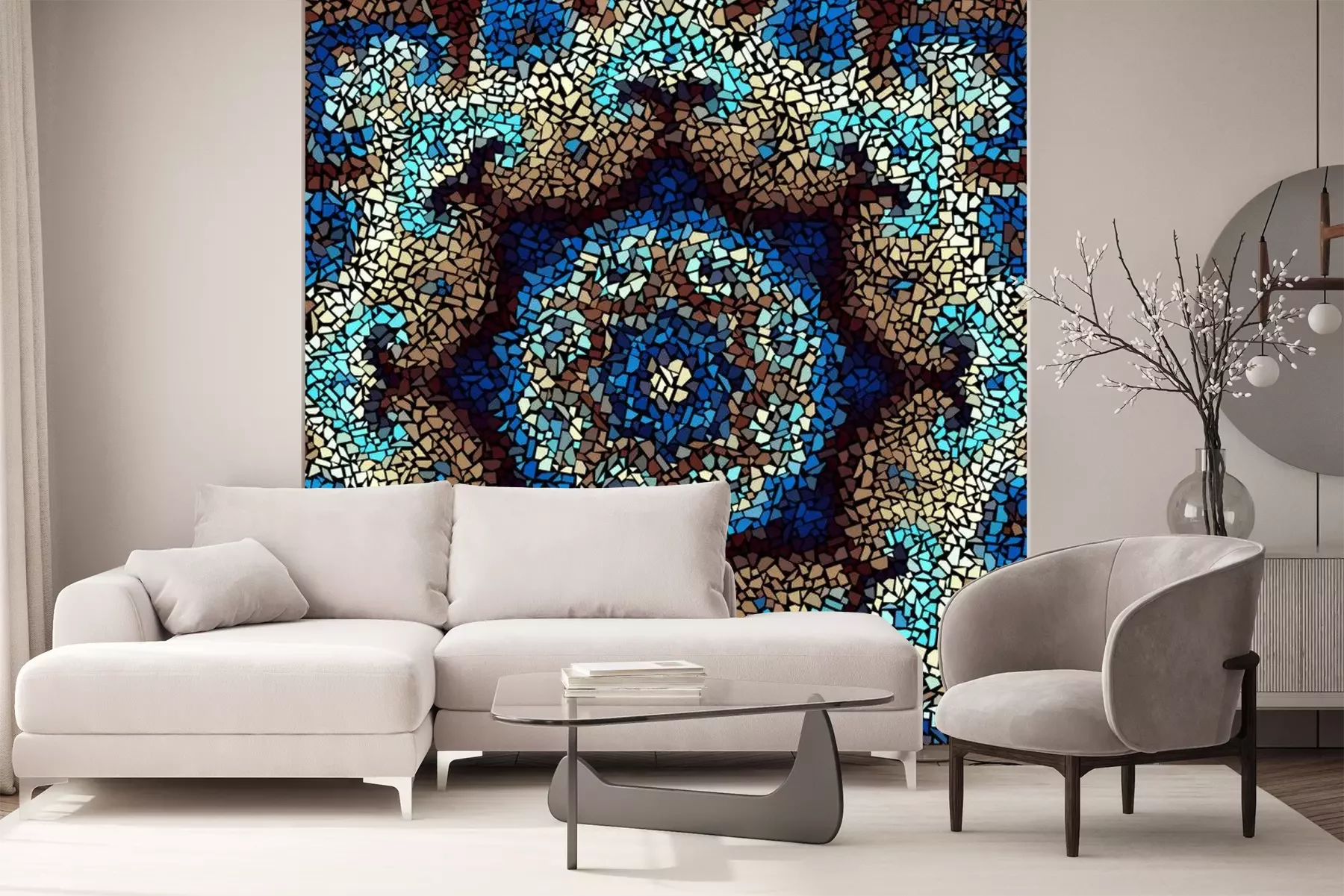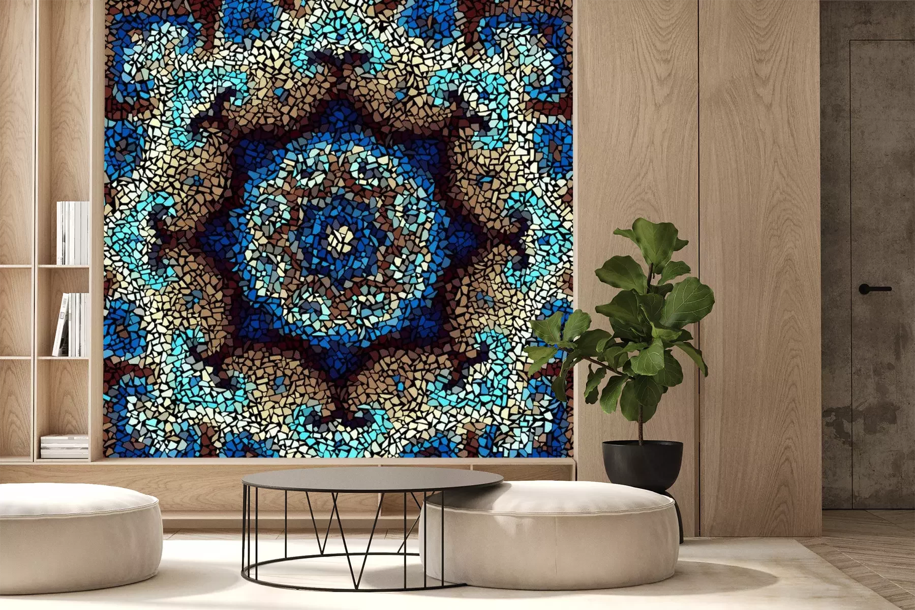 Sticker Nahtlose Hintergrundmuster. Unregelmäßiges dekoratives geometrisches Mosaikkunstfliesenmuster von den unebenen defekten Stücken.