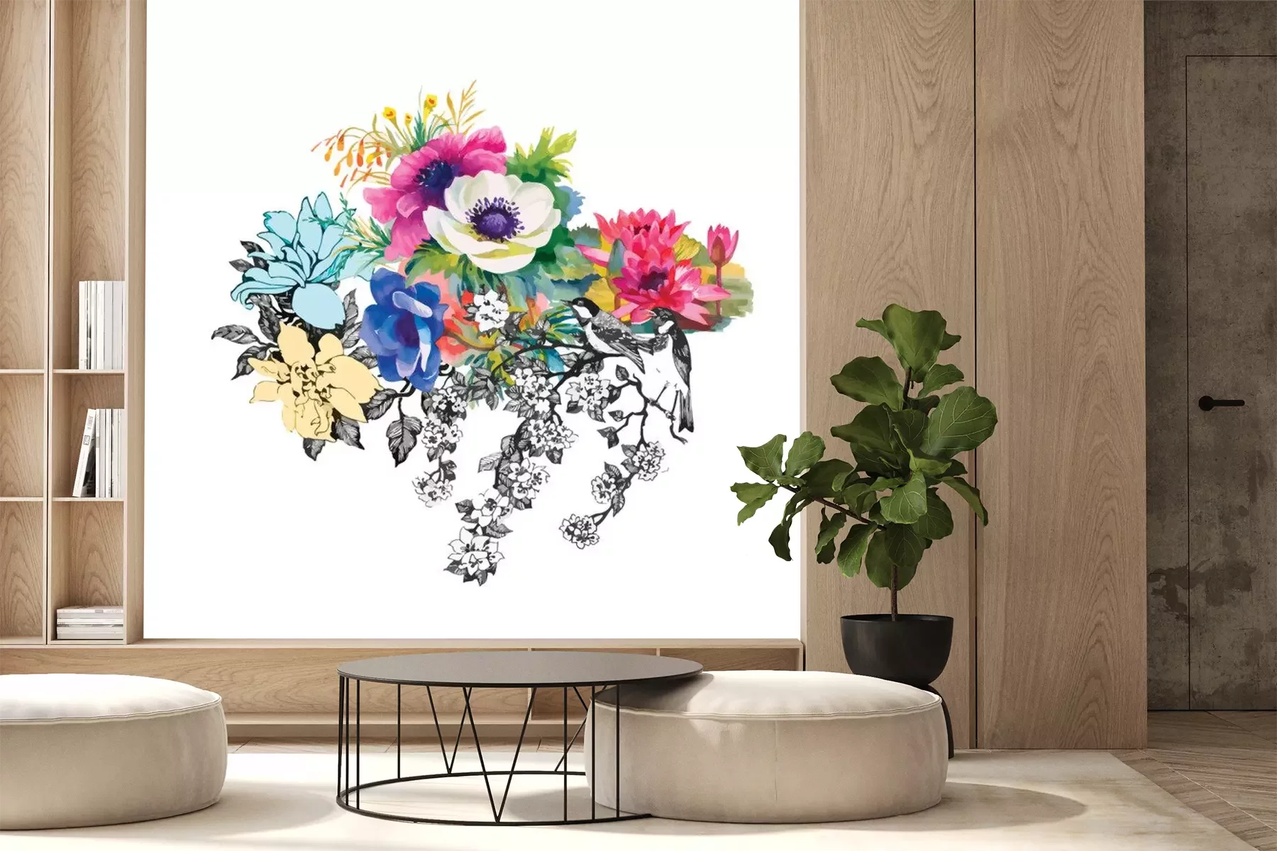 Blumenmuster mit VögelnProblemlose Lieferung durch vertrauenswürdige Spediteure