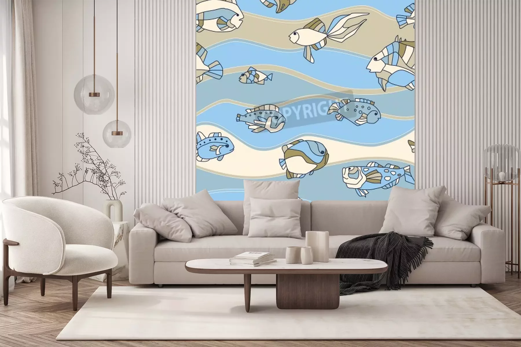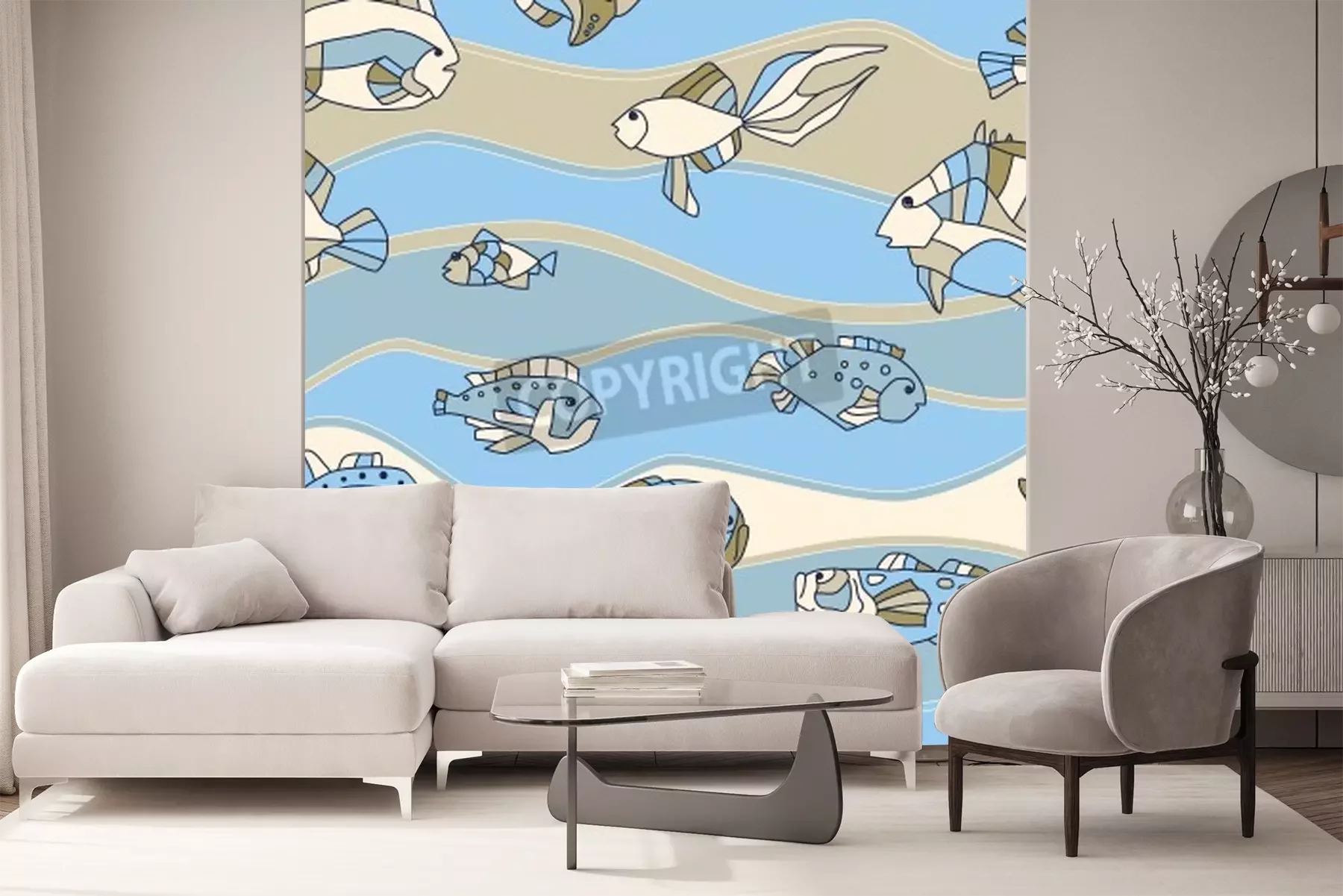 Sticker nahtlose Muster Aquarienfische Hintergrund