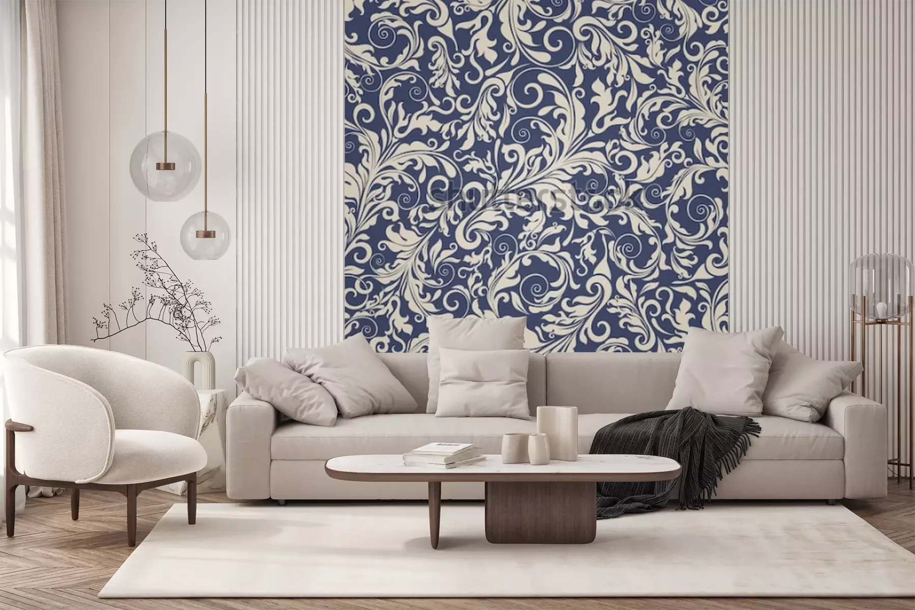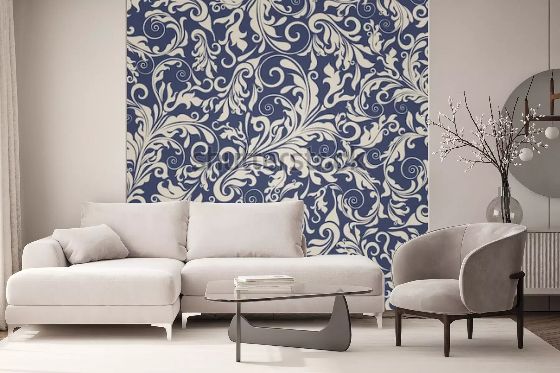 Sticker Nahtloser Hintergrund der beige und blauen Farbe im Stil Damaskus. Vintage Verzierung. Verwendung für Tapeten, Bedrucken des Verpackungspapiers, Textilien.