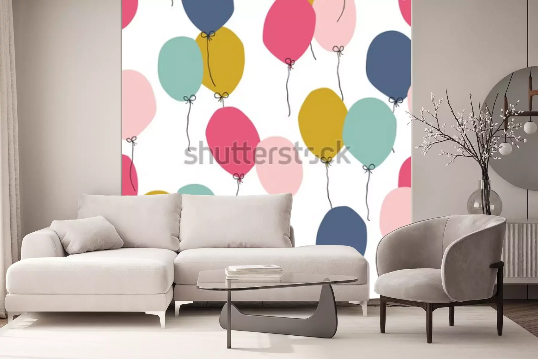 Sticker Nahtloser Hintergrund mit Partyballons verschiedener Farben. Ideal für Kinder, Stoffe, Verpackungen, Tapeten, Textilien, Kleidung