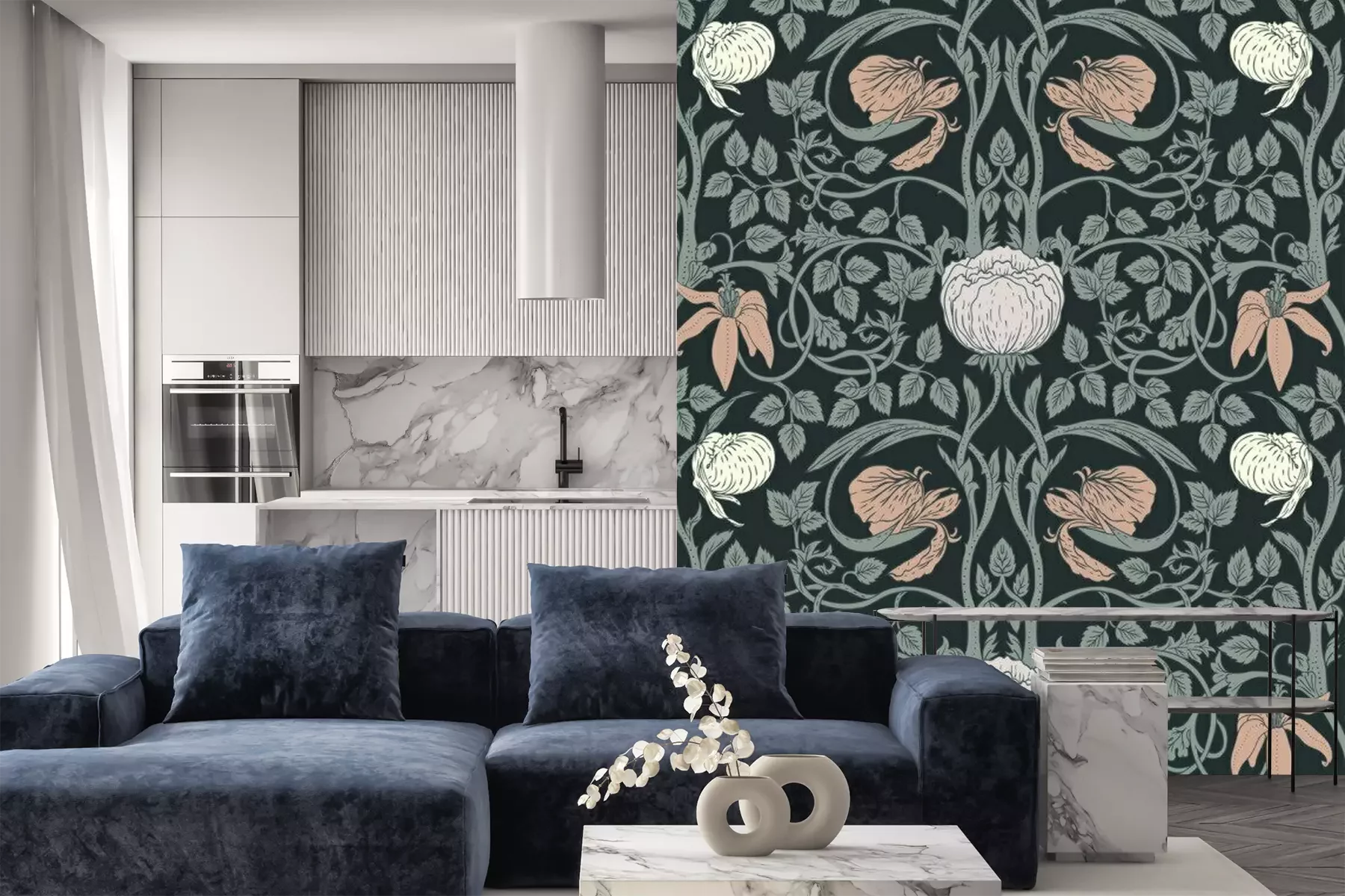 Sticker Nahtloses Muster der Blumenweinlese für Retro- Tapeten. Verzauberte Vintage Blumen. Kunst und Handwerk Bewegung inspiriert.