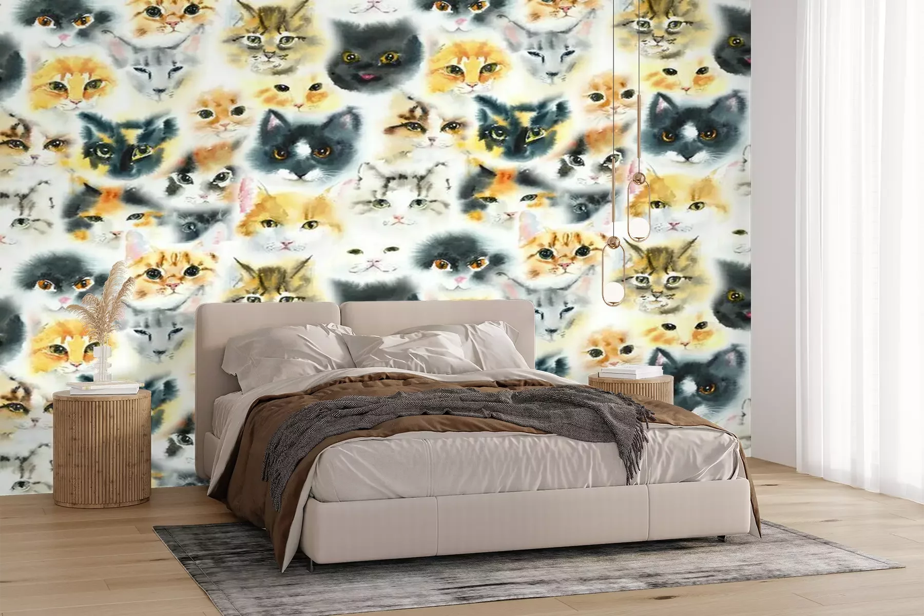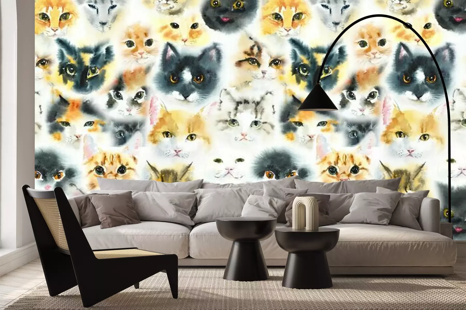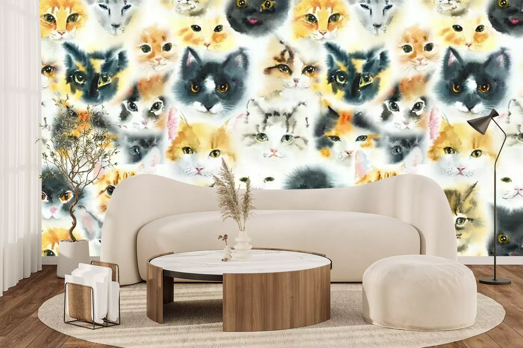 Sticker Nahtloses Muster mit Katzen. Gezeichnete Illustration des Aquarells Hand