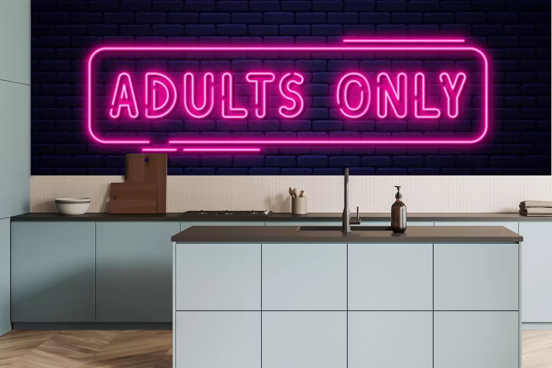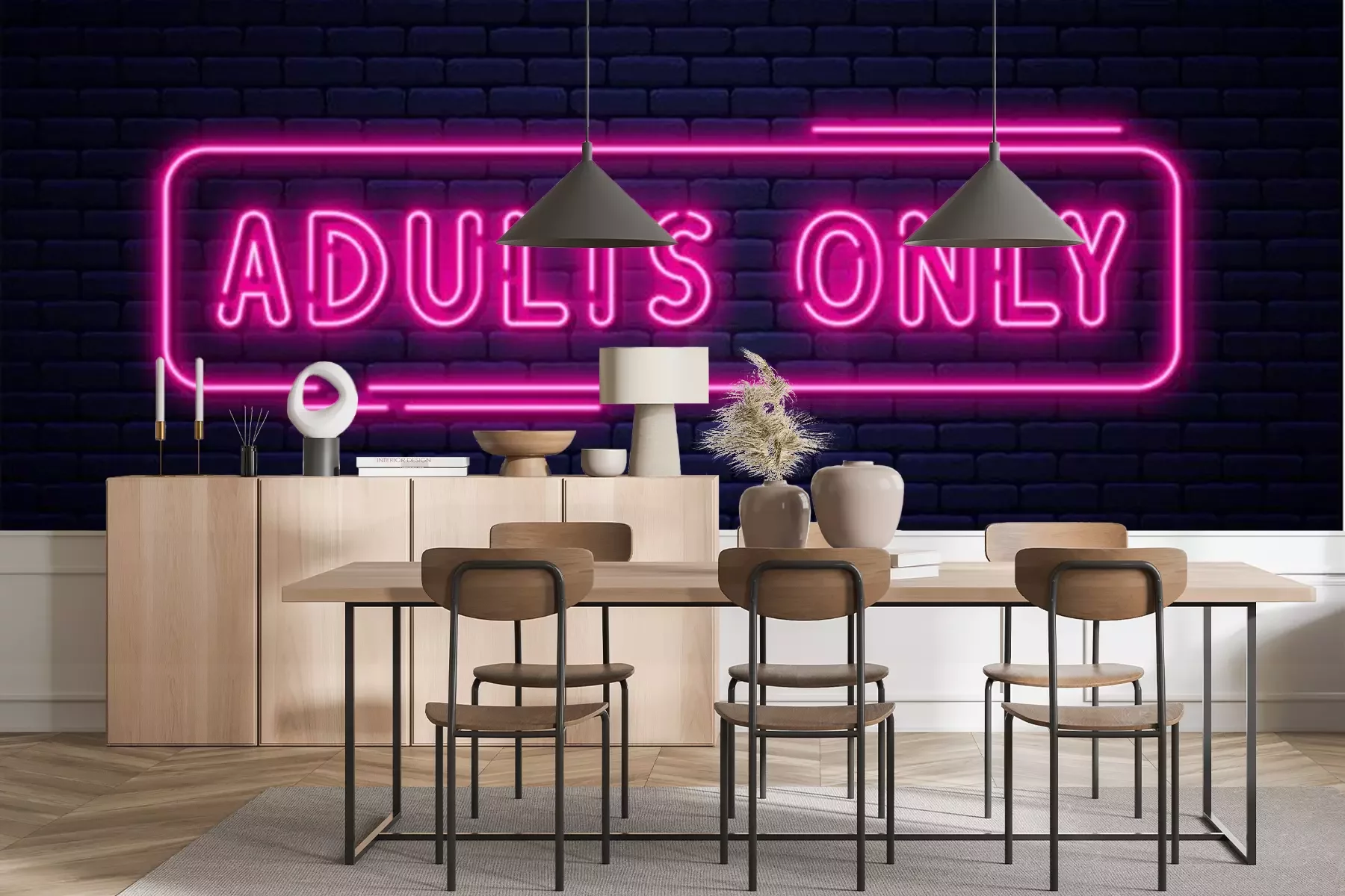 Sticker Neon sign, adults only, 18 plus, sex and xxx. Restricted content, erotic video concept banner, billboard or signboard