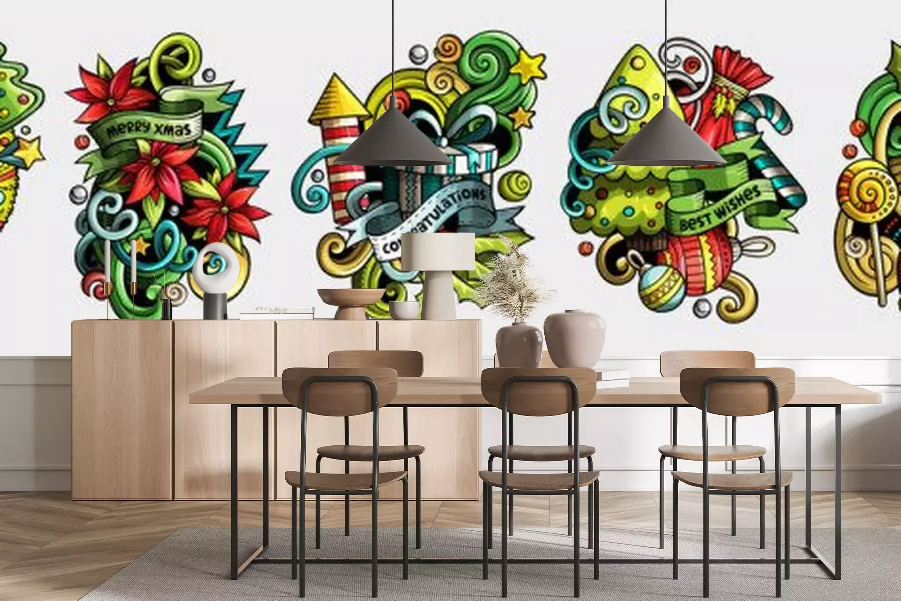 Sticker New Year cartoon vector doodle designs set