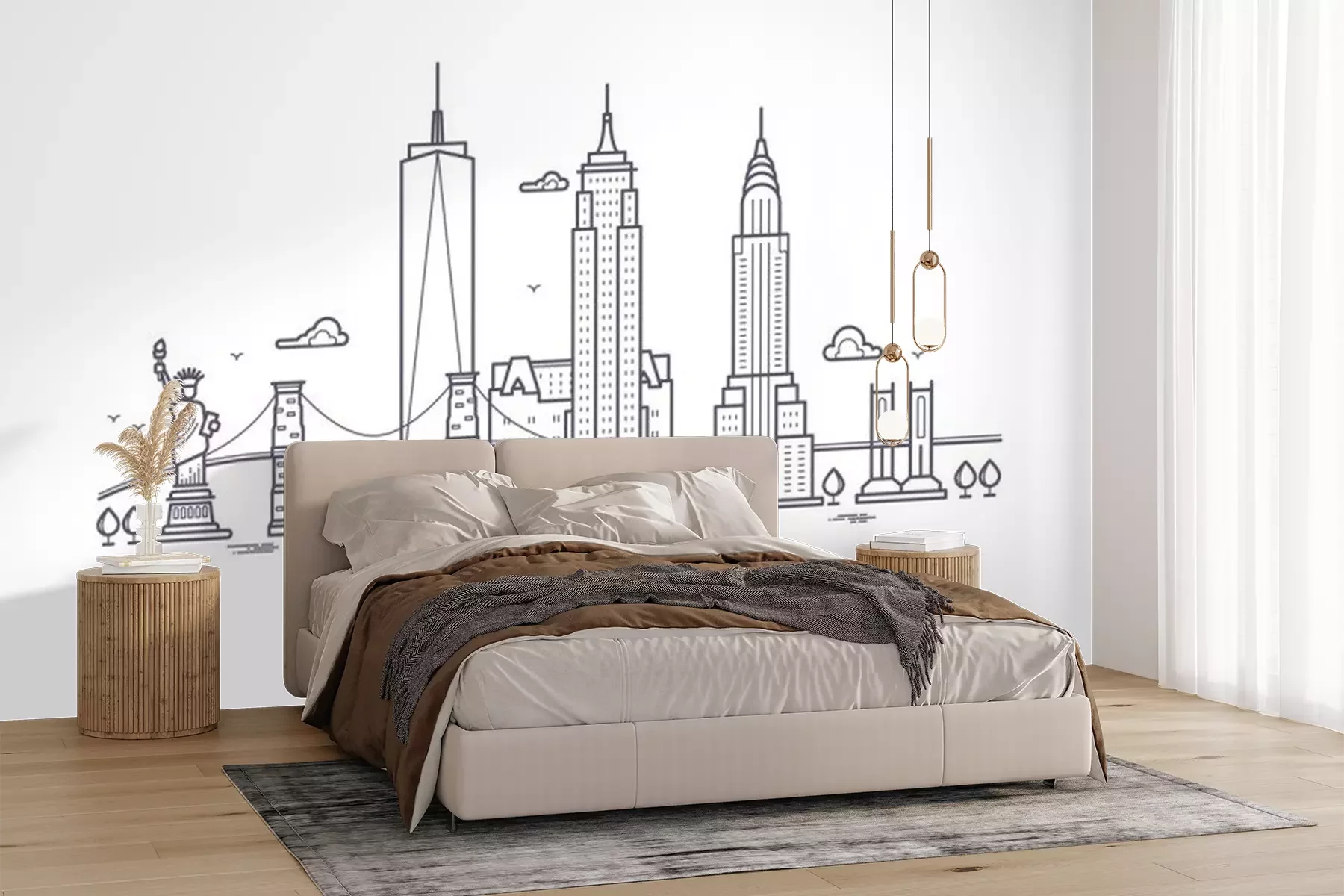 Sticker New York City skizzieren Skyline, nyc Linie Silhouette, Usa Touristen und Reisen Vektor-Konzept