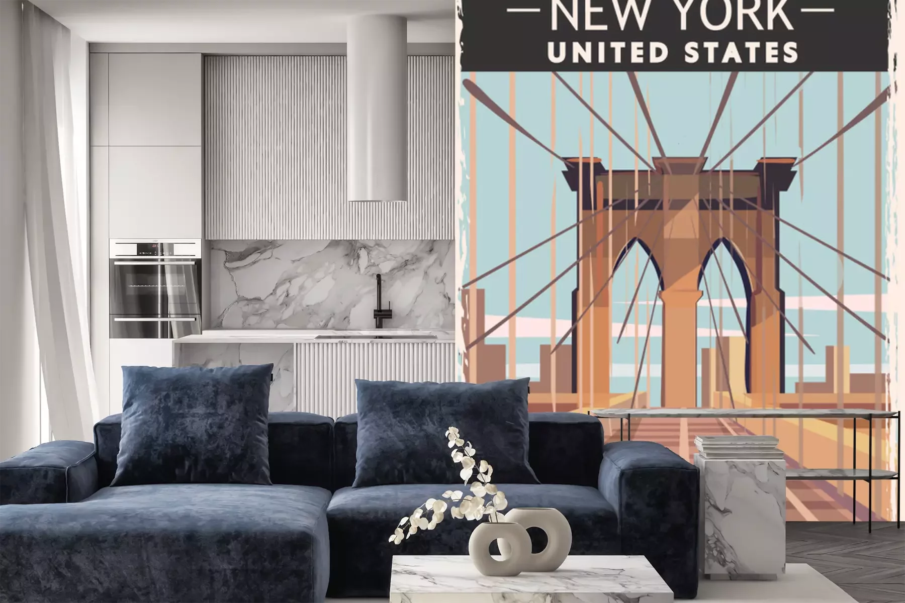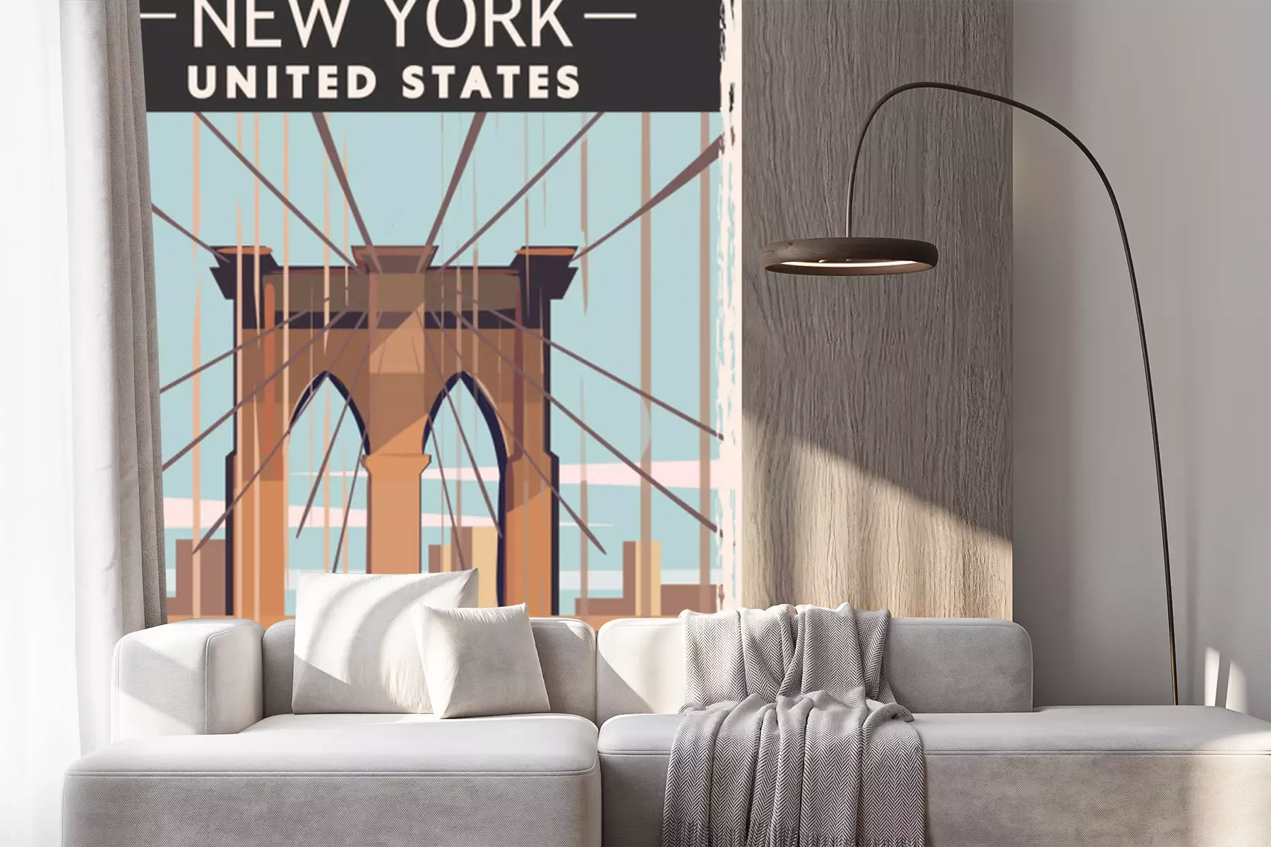 Sticker New Yorker Brücke auf Vintage-Illustration