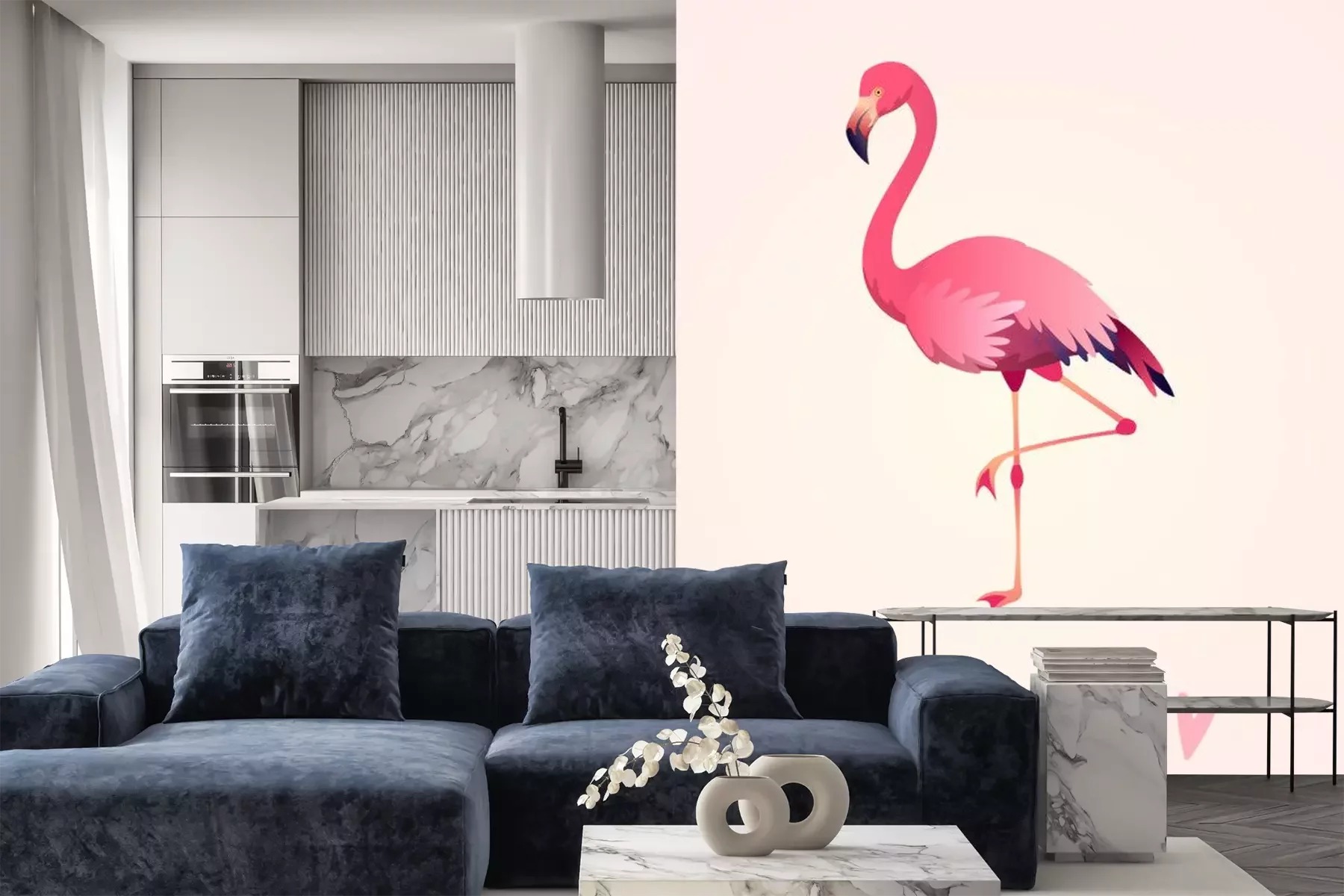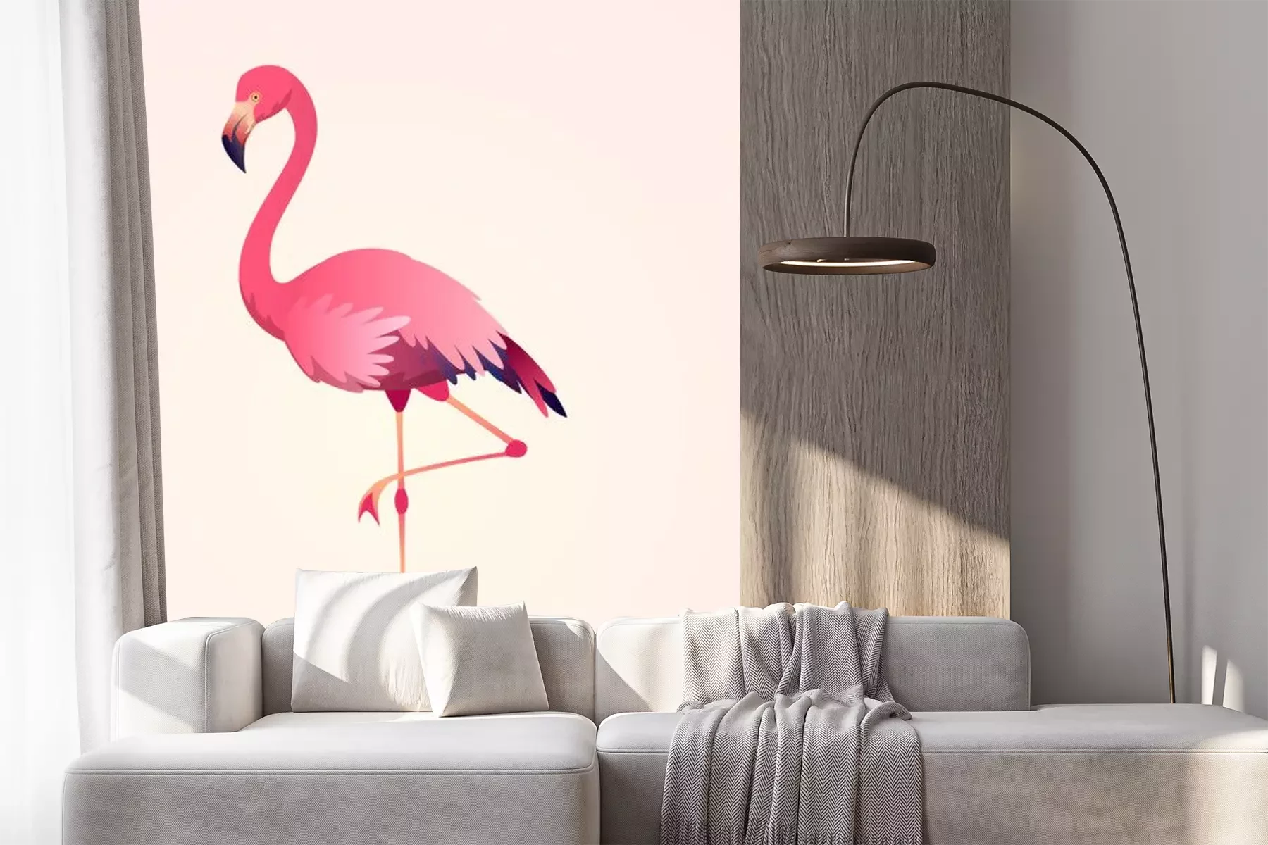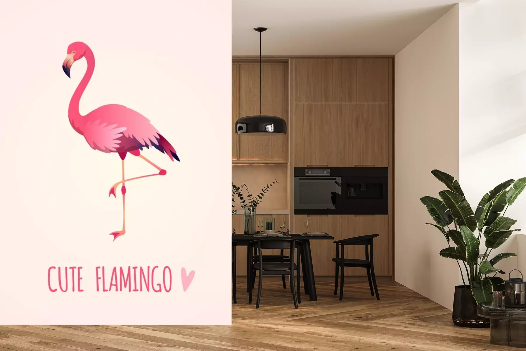 Sticker Niedlicher Flamingo auf einem cremefarbenen Hintergrund