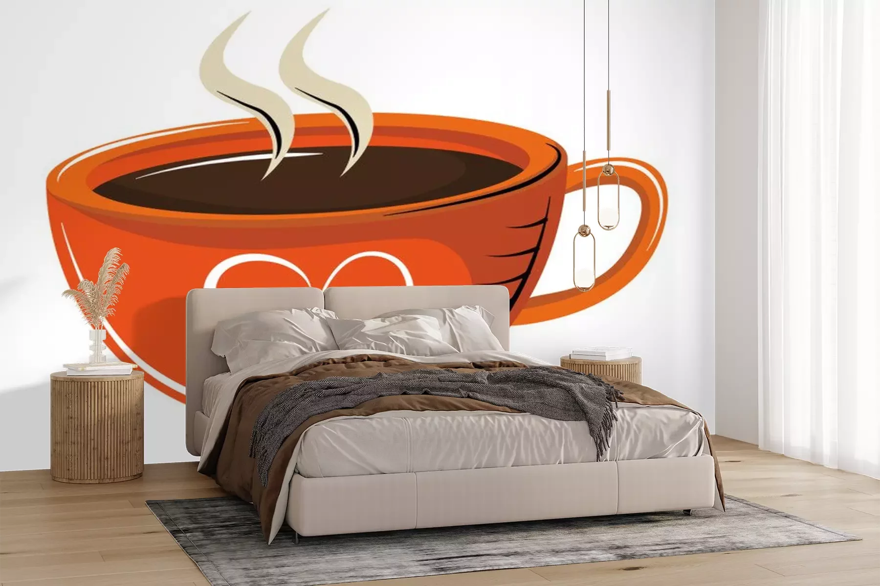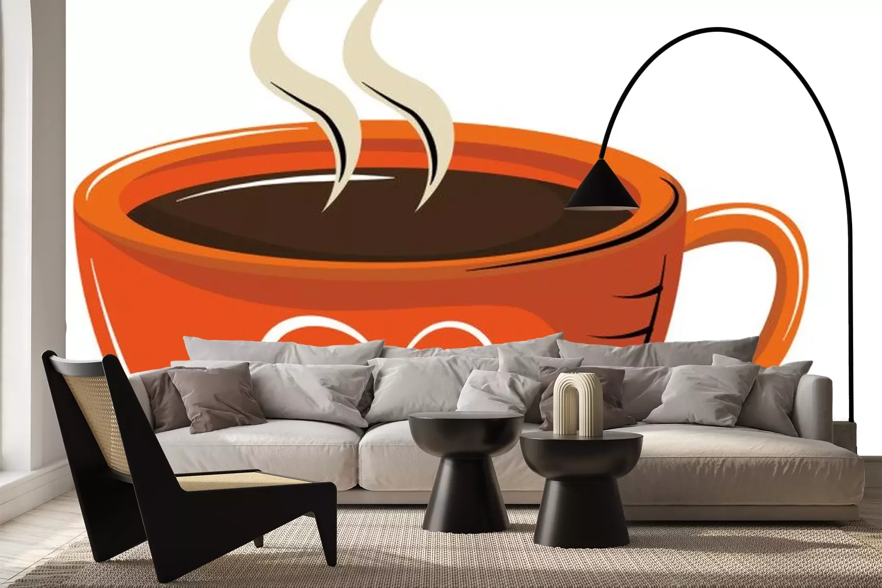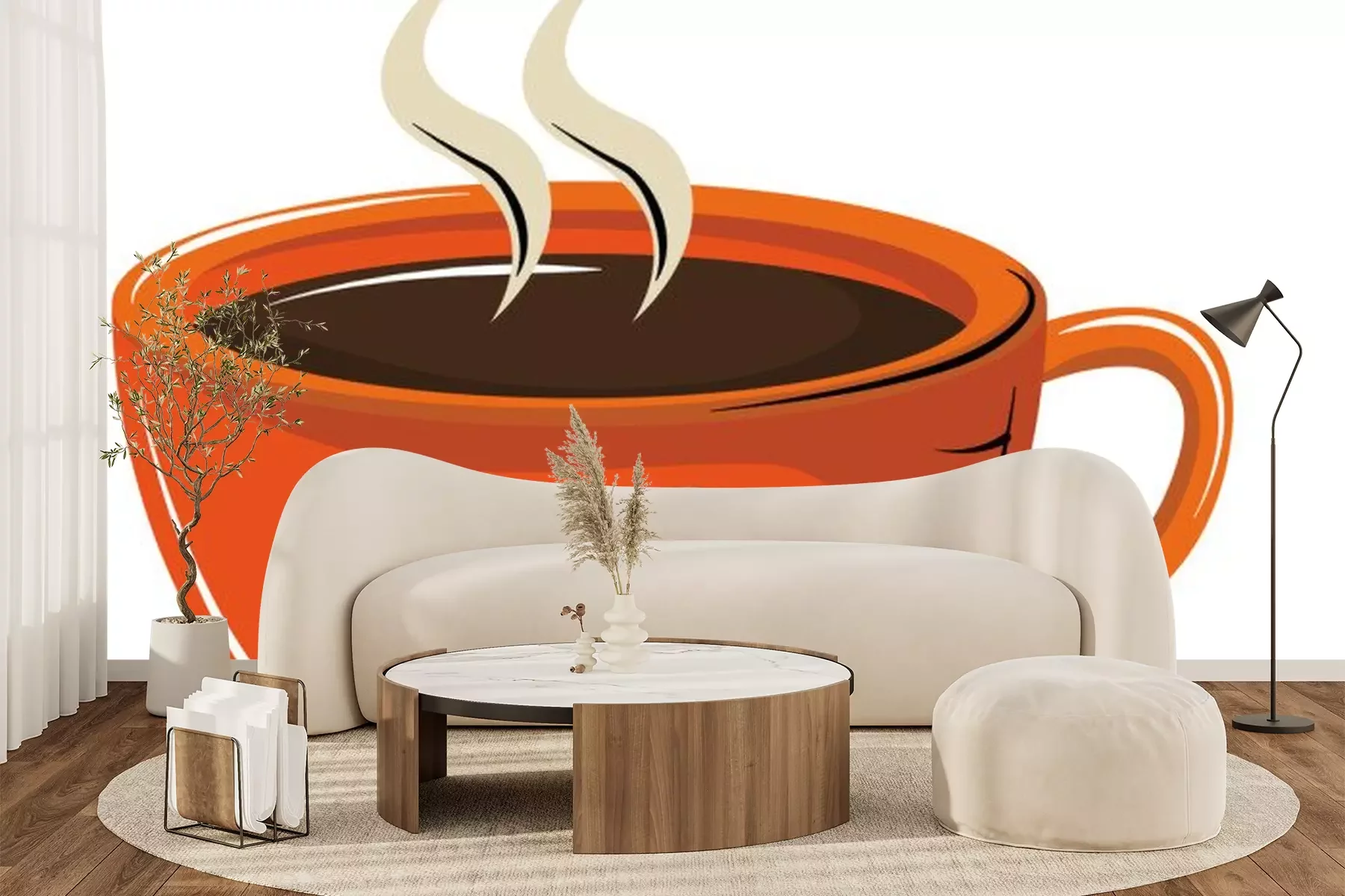 Sticker Orangefarbene Tasse Kaffee mit Herz