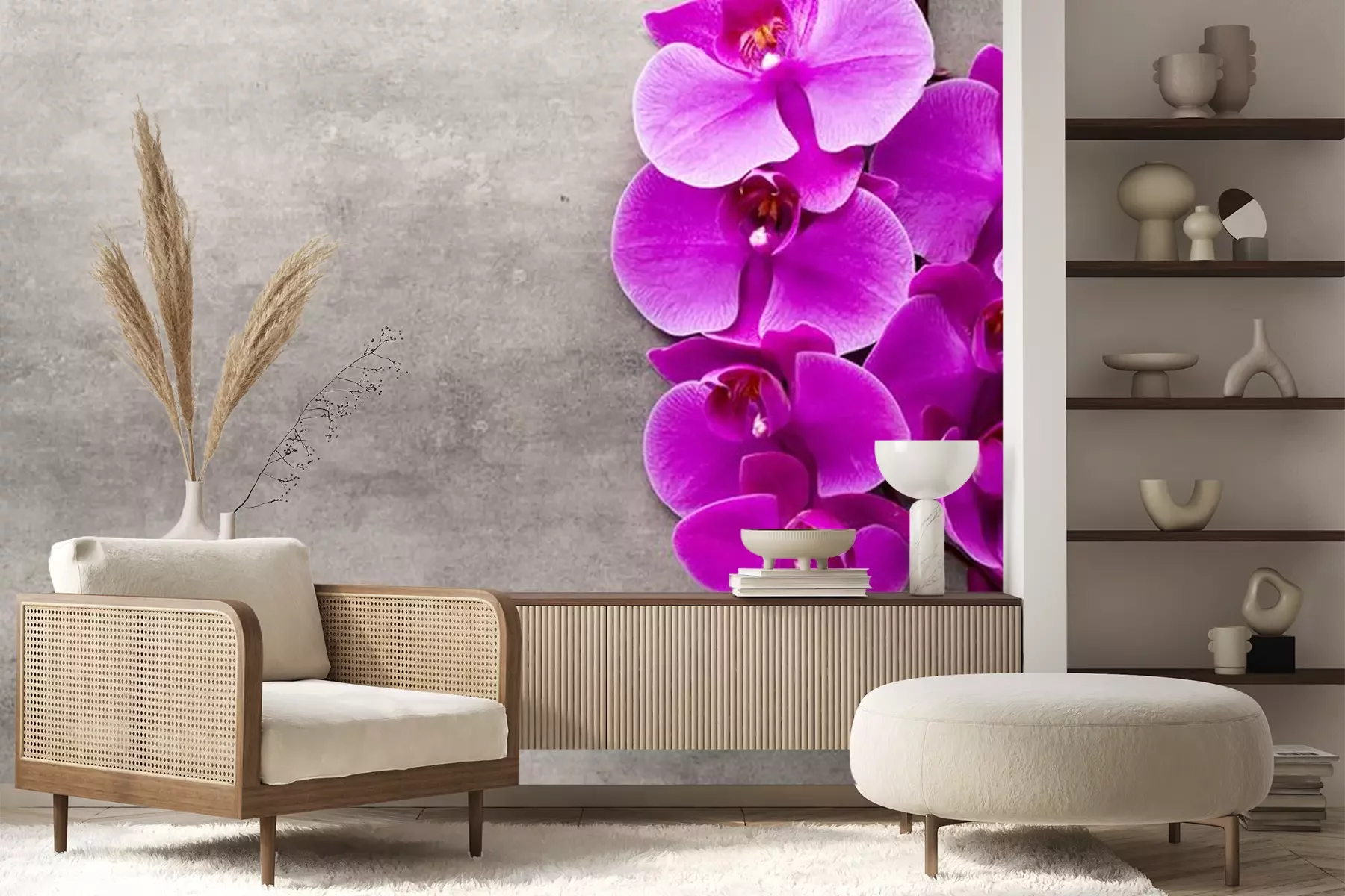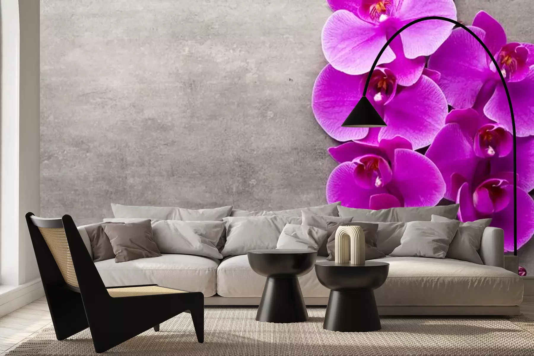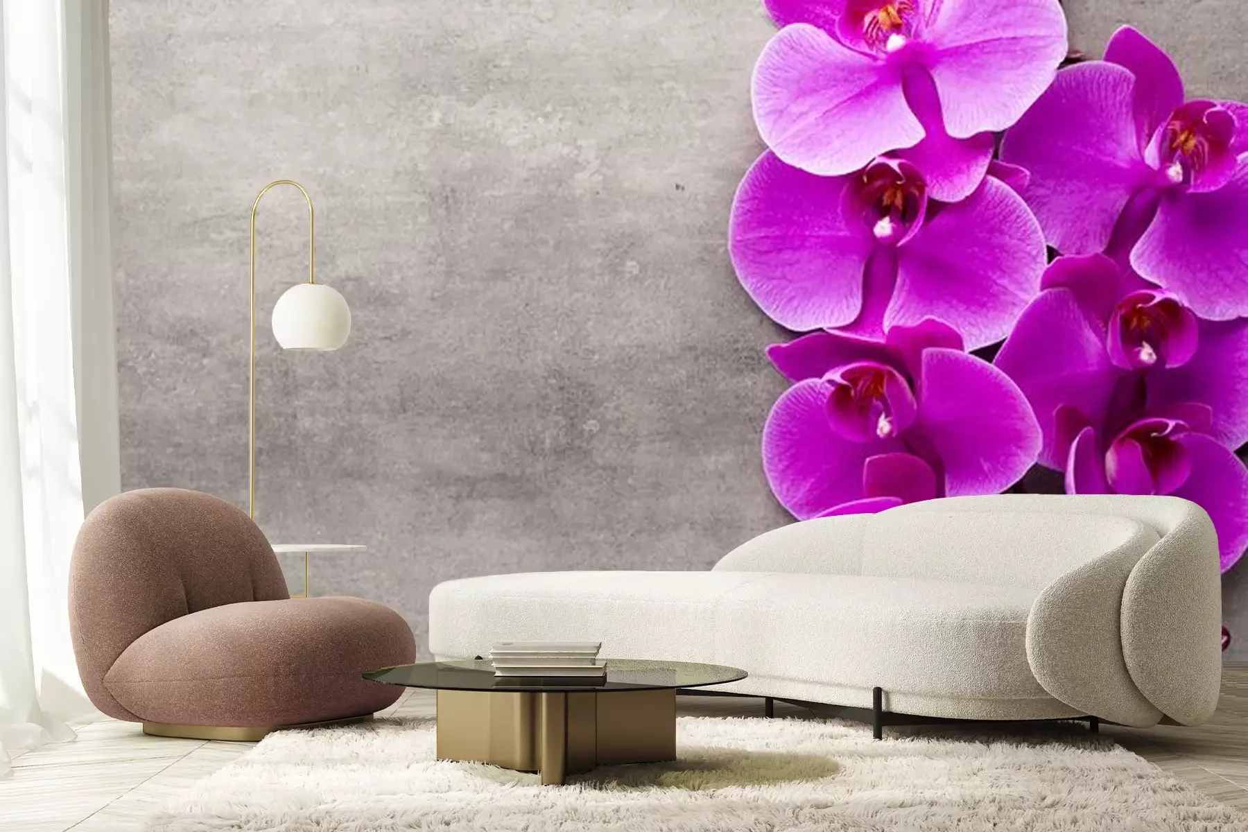 Weiße Orchidee auf grauem BetonProblemlose Lieferung durch vertrauenswürdige Spediteure