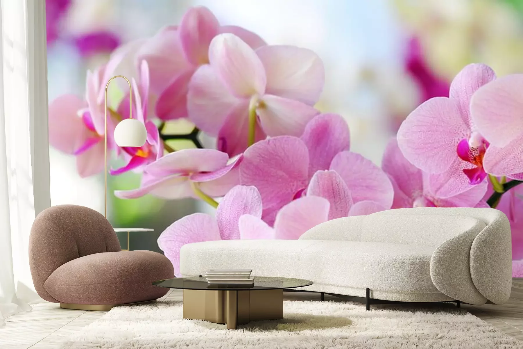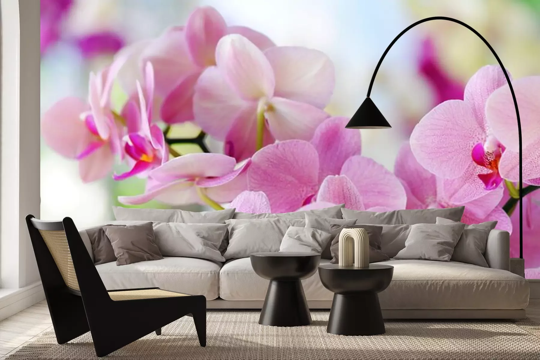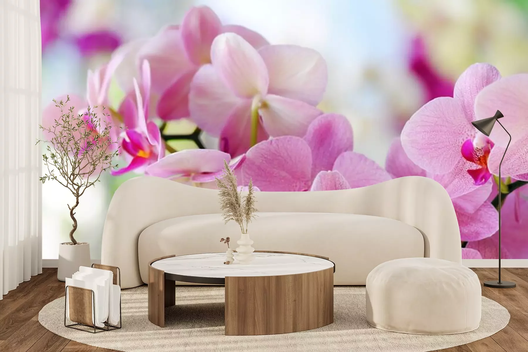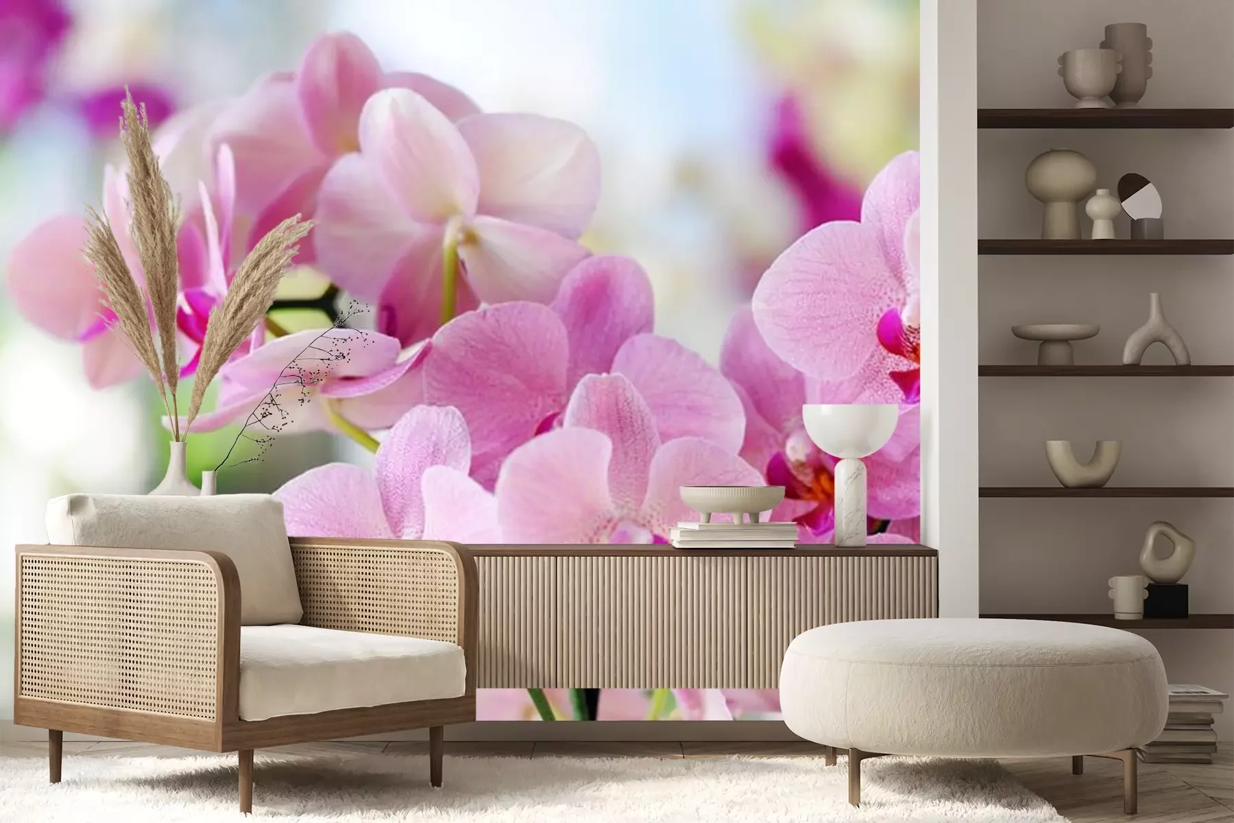 Modische Orchideen auf grauem HintergrundProblemlose Lieferung durch vertrauenswürdige Spediteure