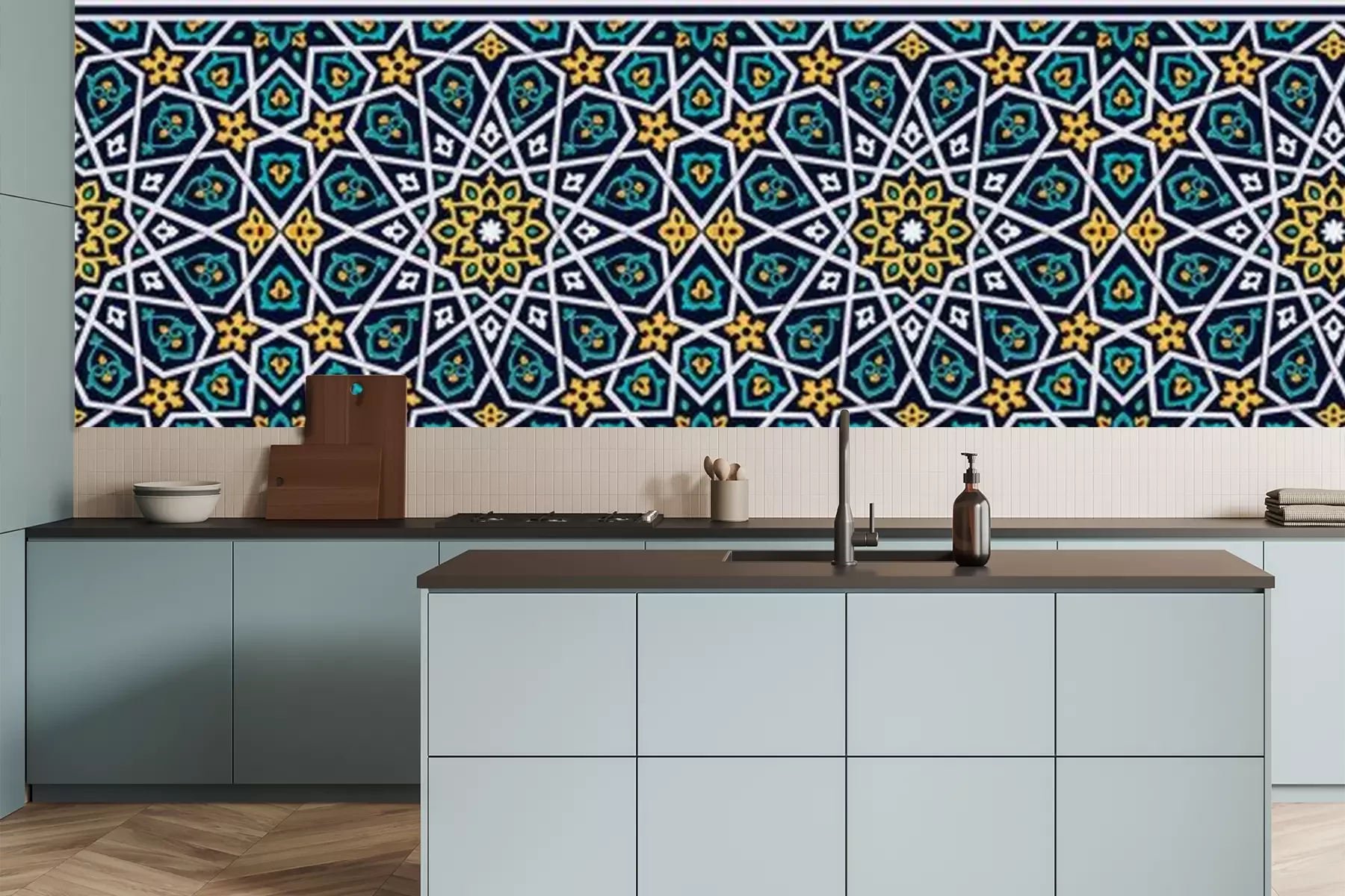 Sticker Oriental vector ornament, bardur. Majolica in architecture. Also used as a pattern or texture.