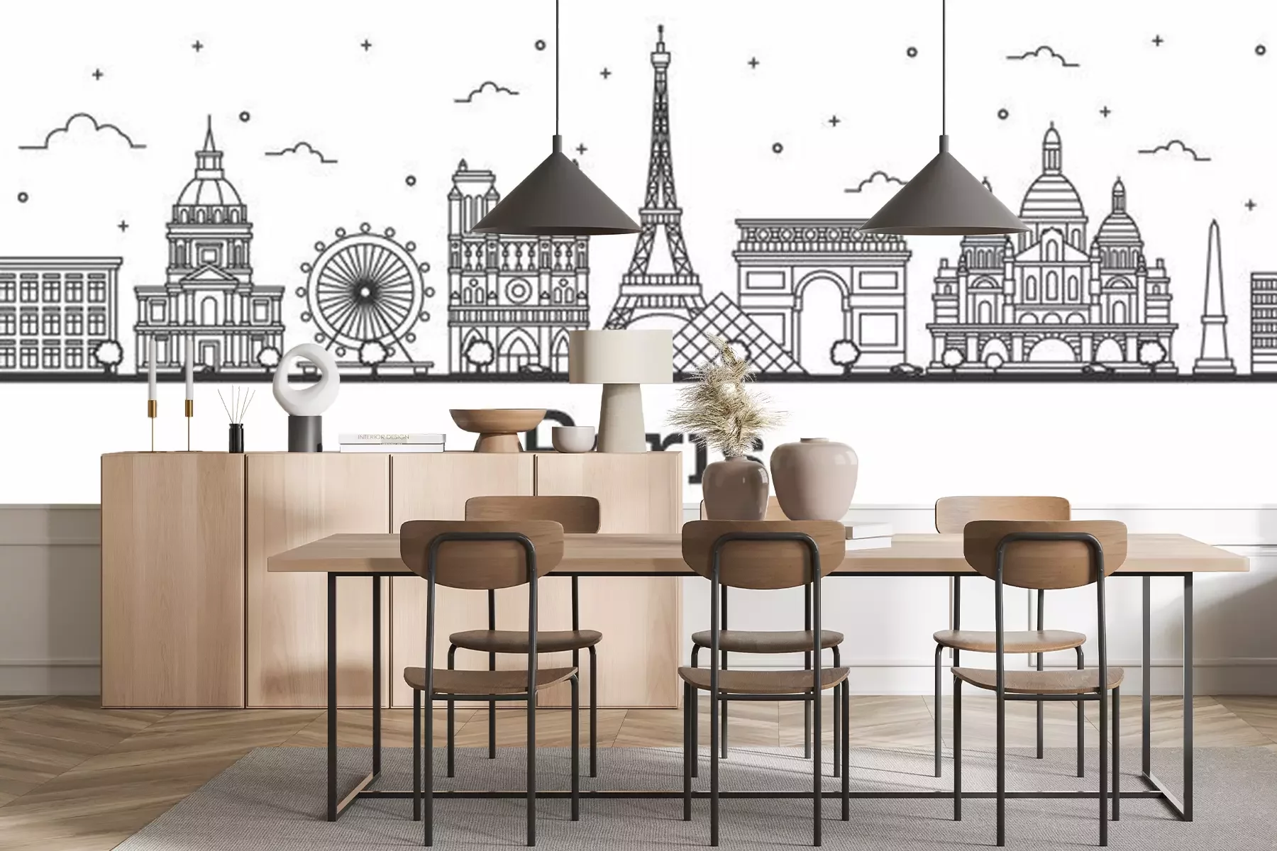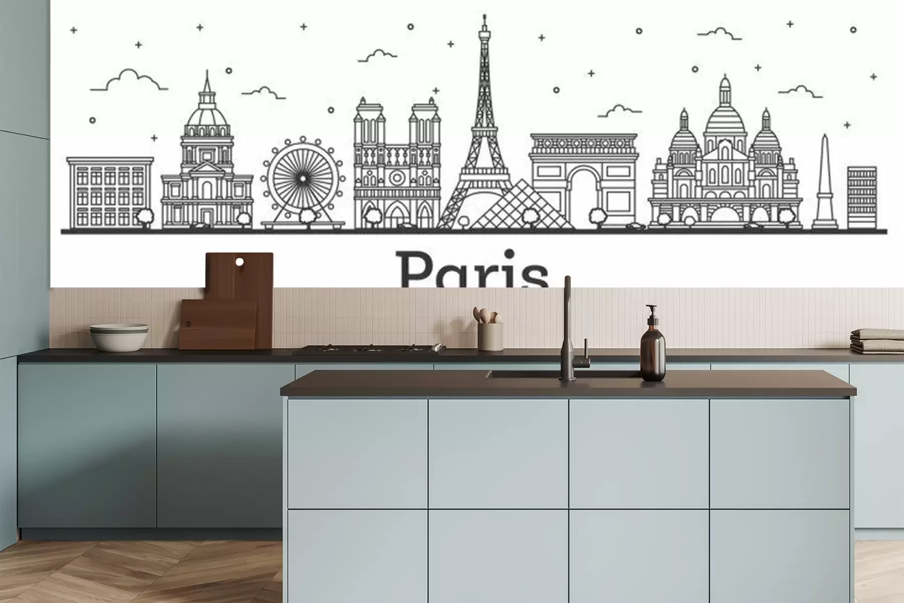 Sticker Outline Paris France City Skyline with Historic Buildings Isolated on White.