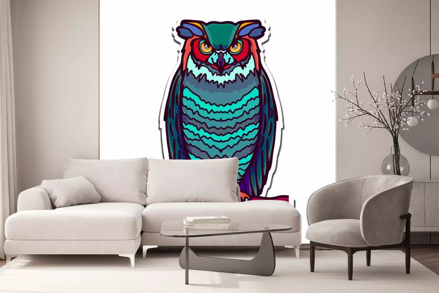 Sticker Owl sticker hand drawn illustration. An evil owl logo sits on a branch.