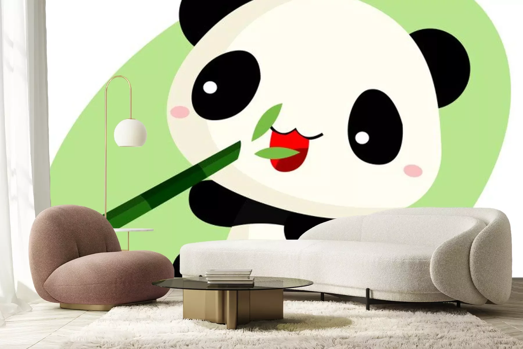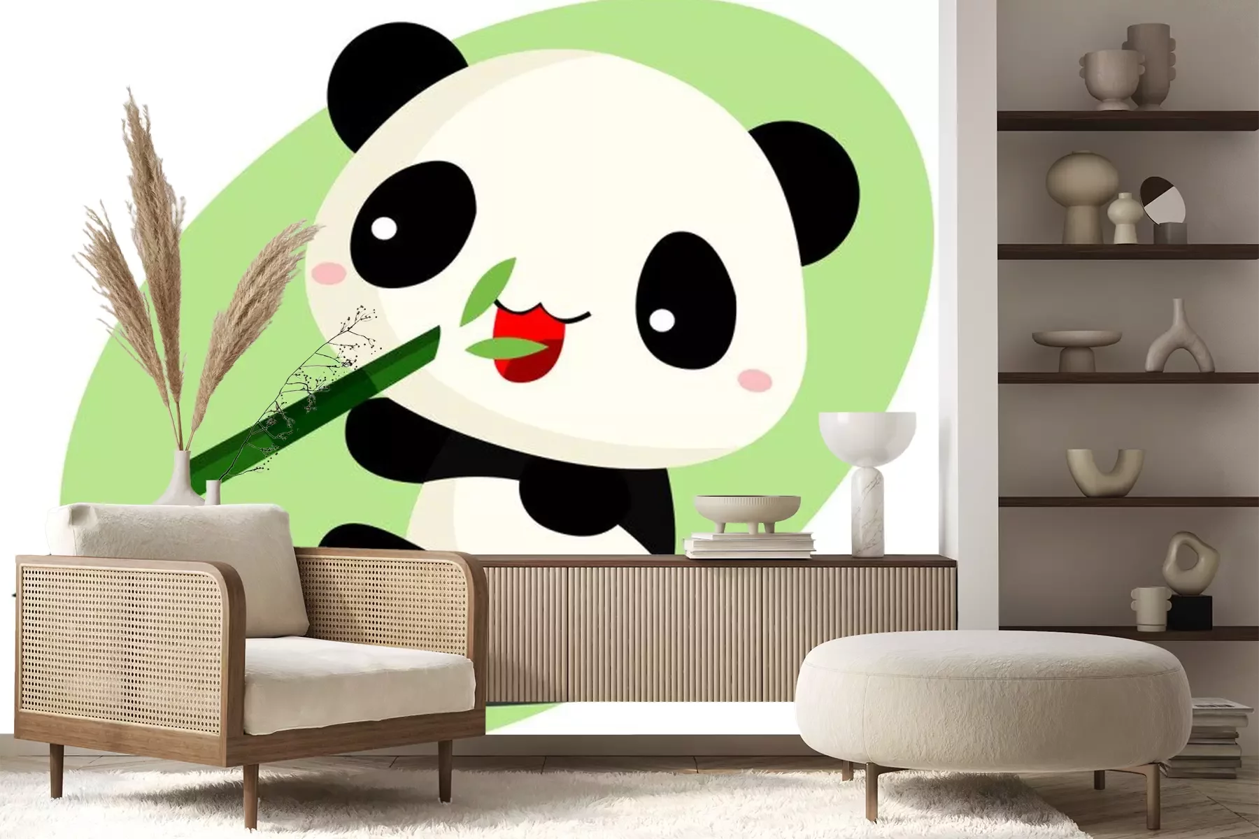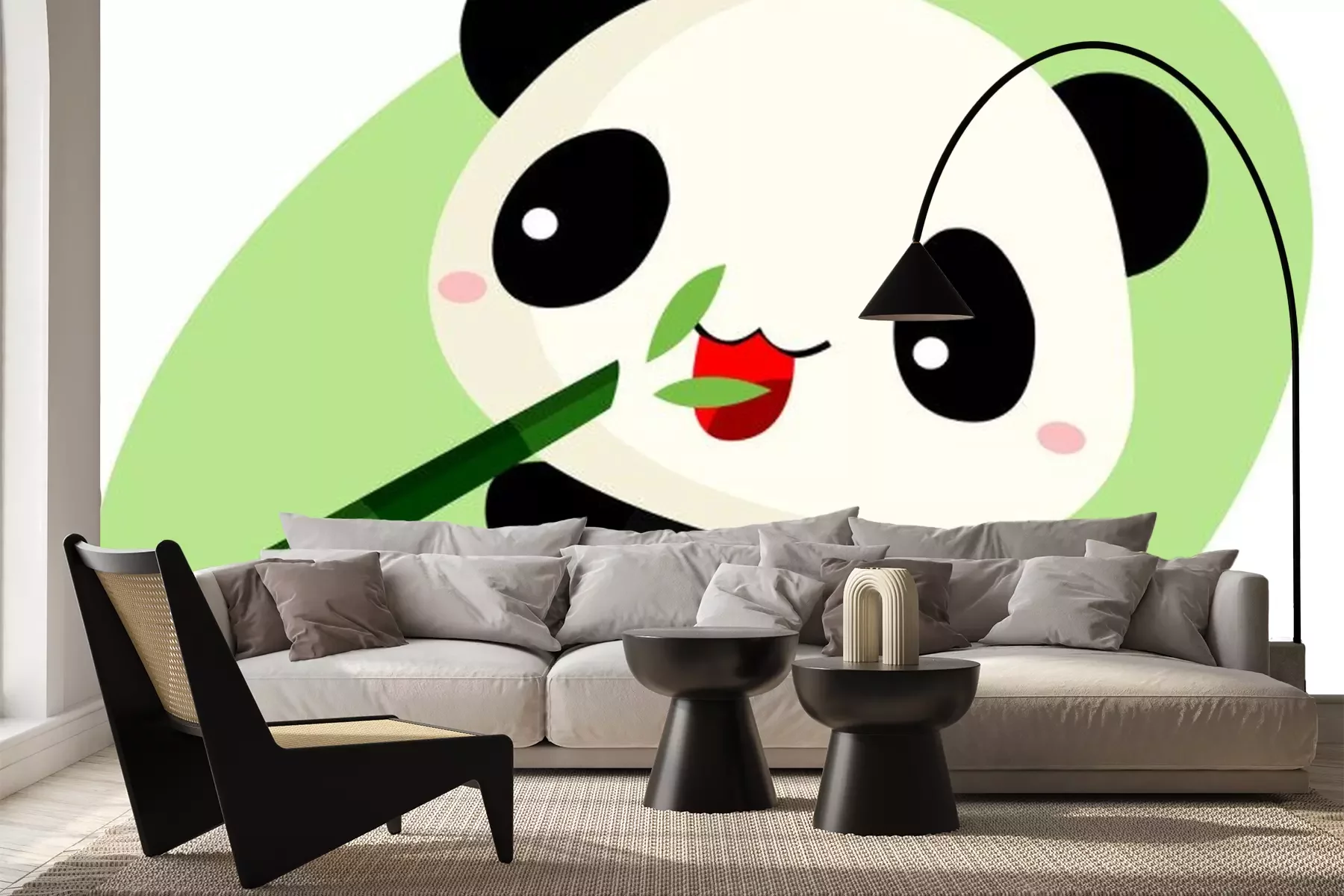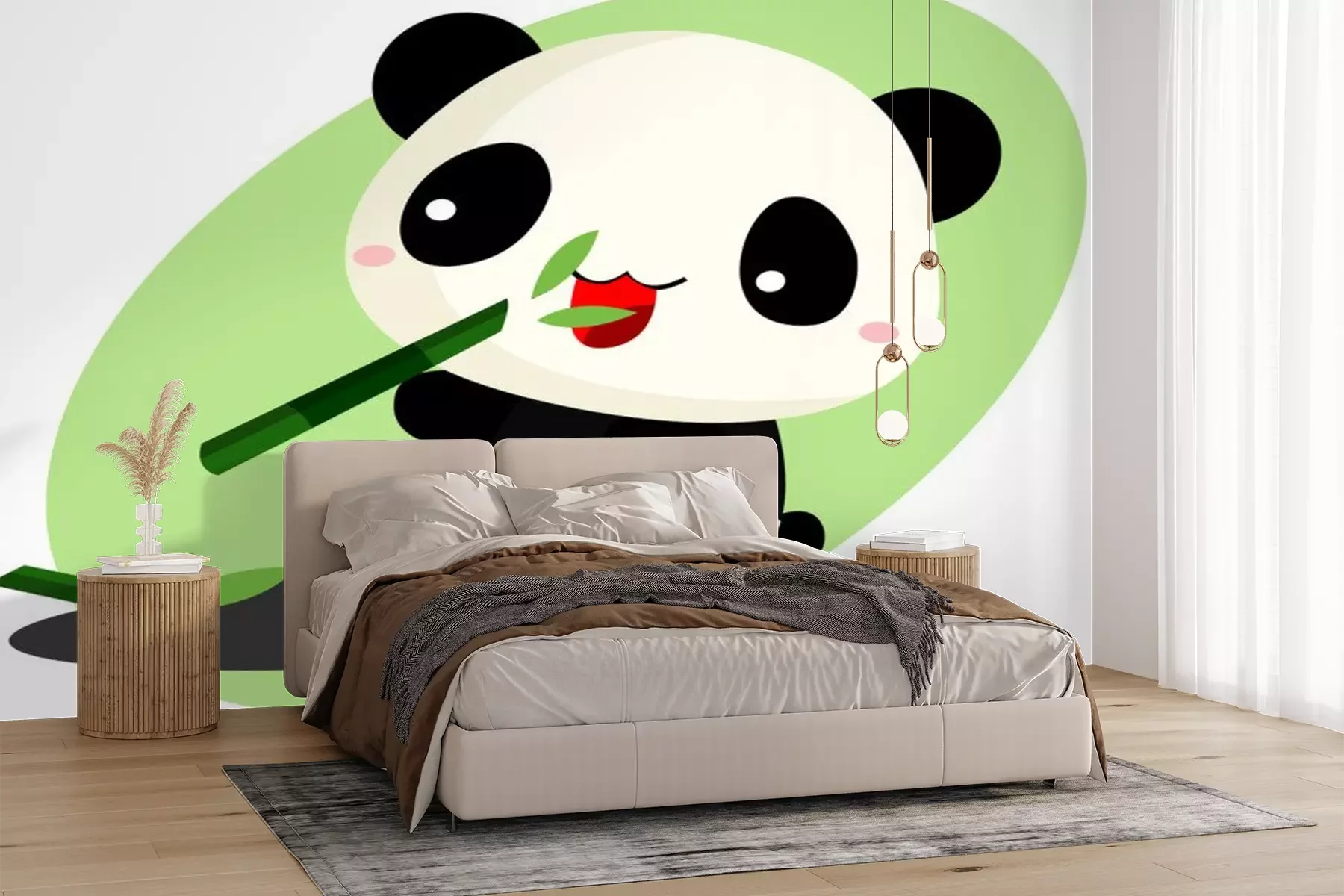 Sticker Panda frisst Bambus im Kawaii-Stil