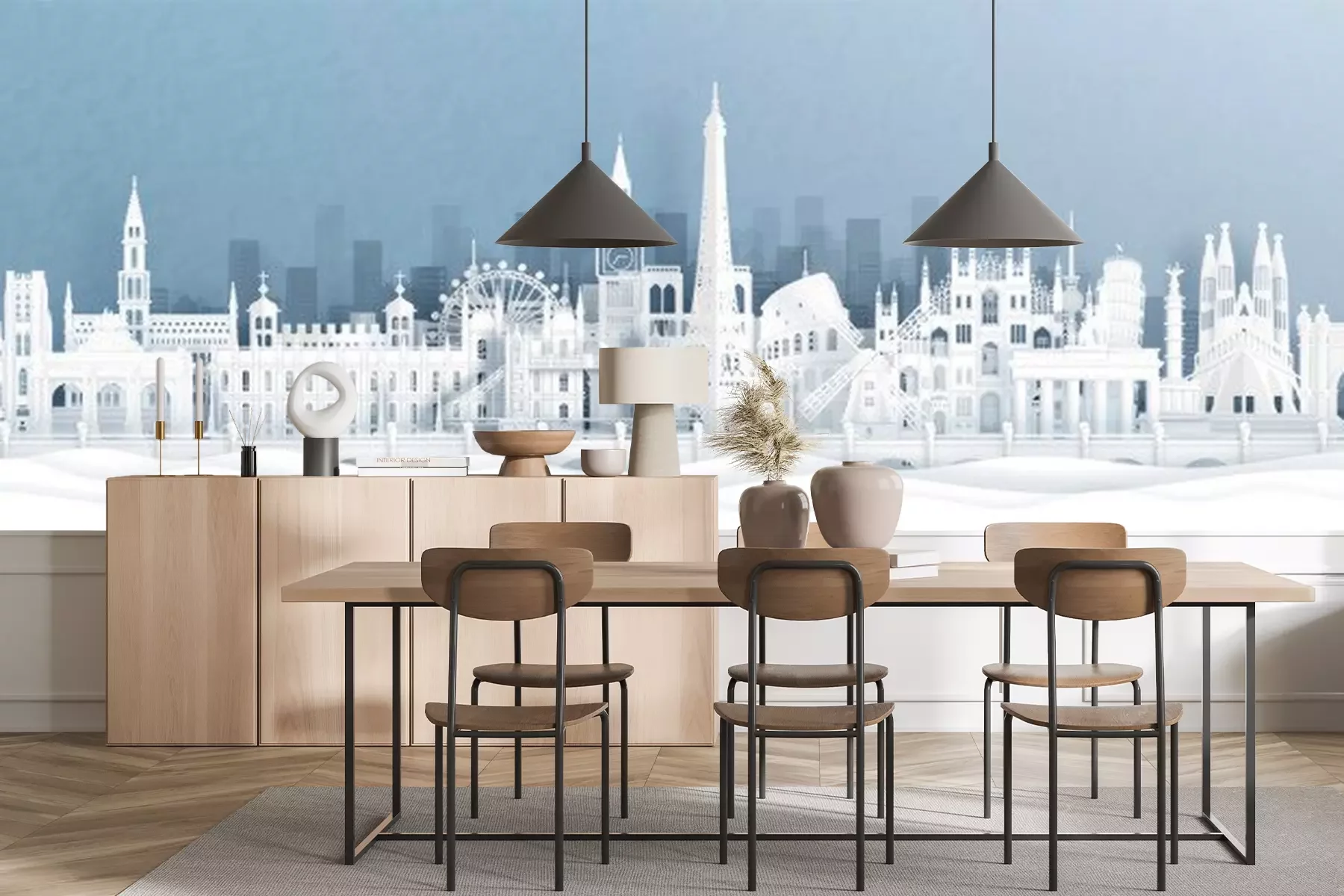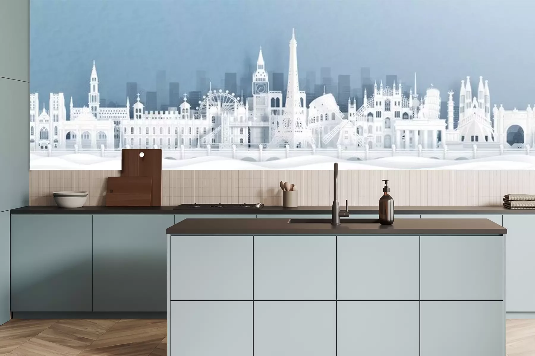 Sticker Panorama postcard and travel poster of world famous landmarks of europe, Holland, France, Germany, Belgium, Spain and England in paper cut style vector illustration