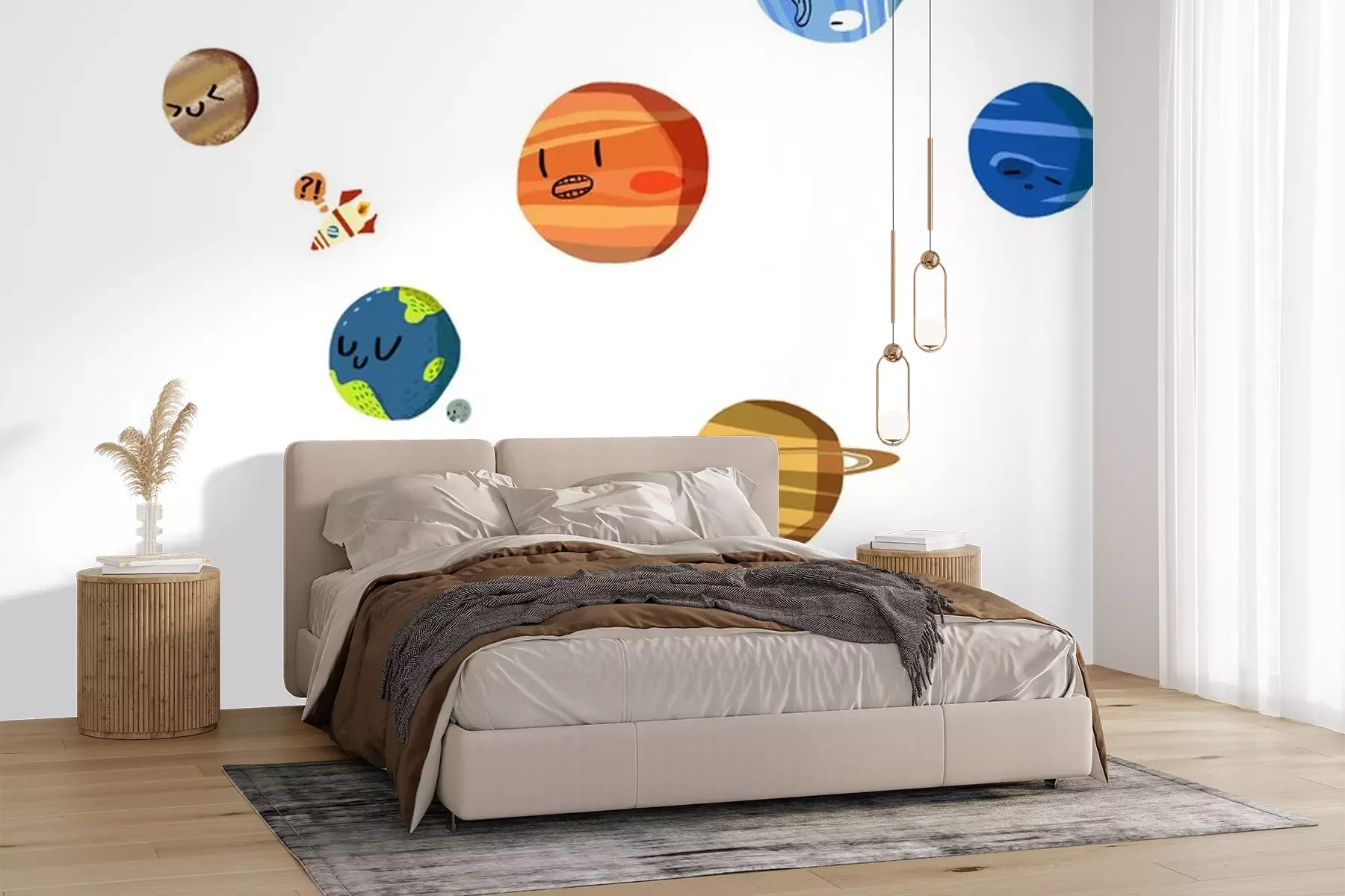 Sticker Planeten Solarsystem und fliegende Rakete