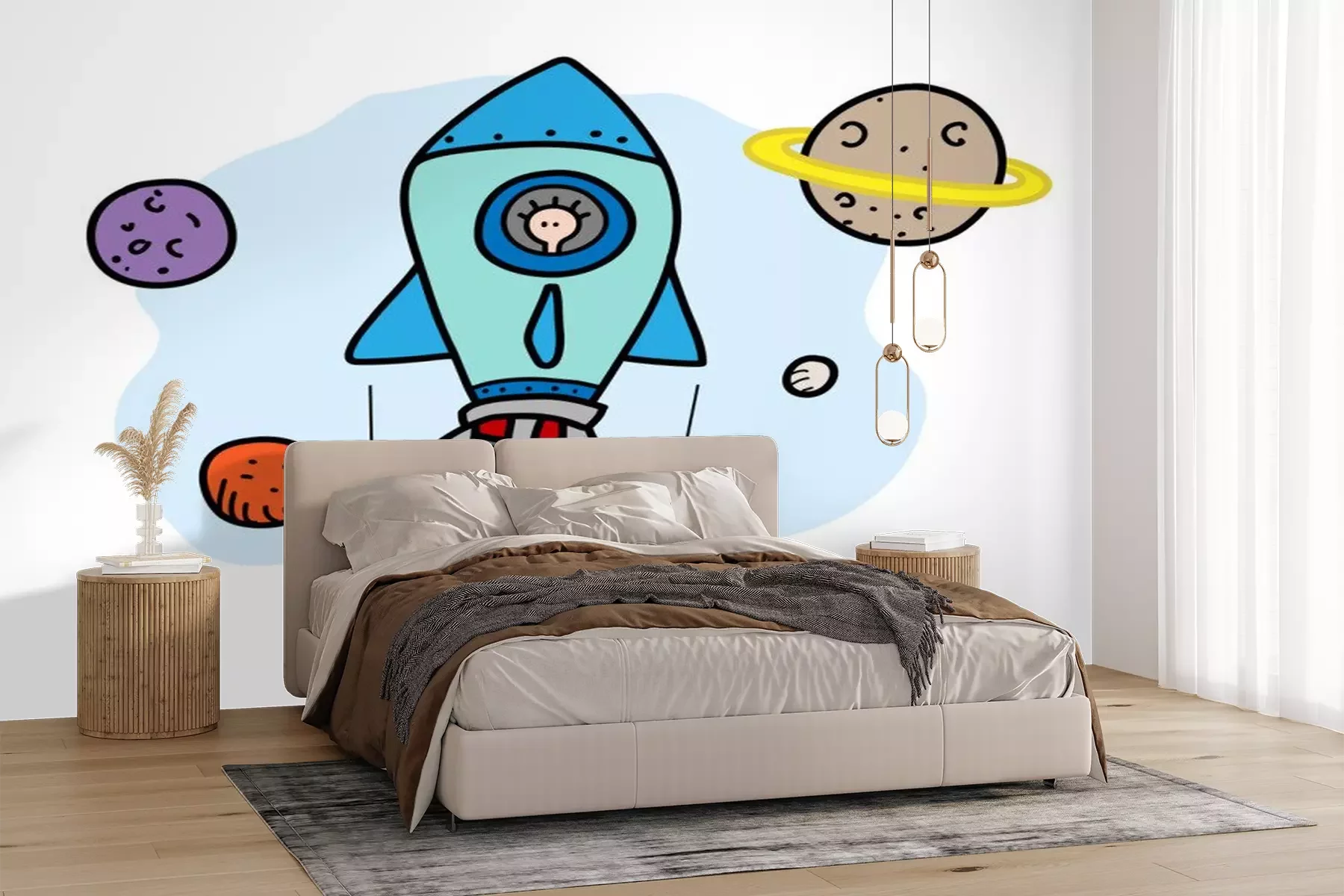 Sticker Planeten Sonnensystem und fliegende Rakete