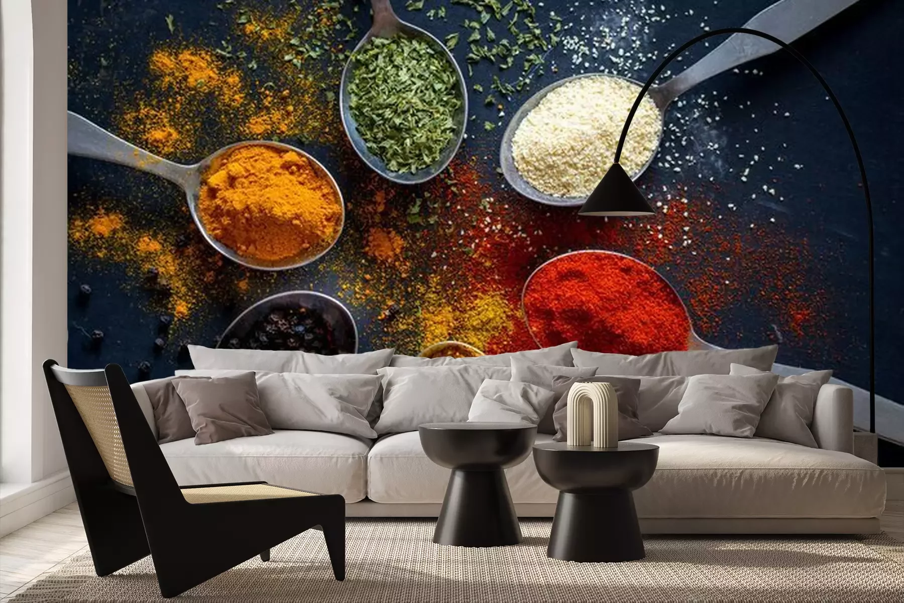 Mehrfarbige Gewürze auf LöffelnProblemlose Lieferung durch vertrauenswürdige Spediteure