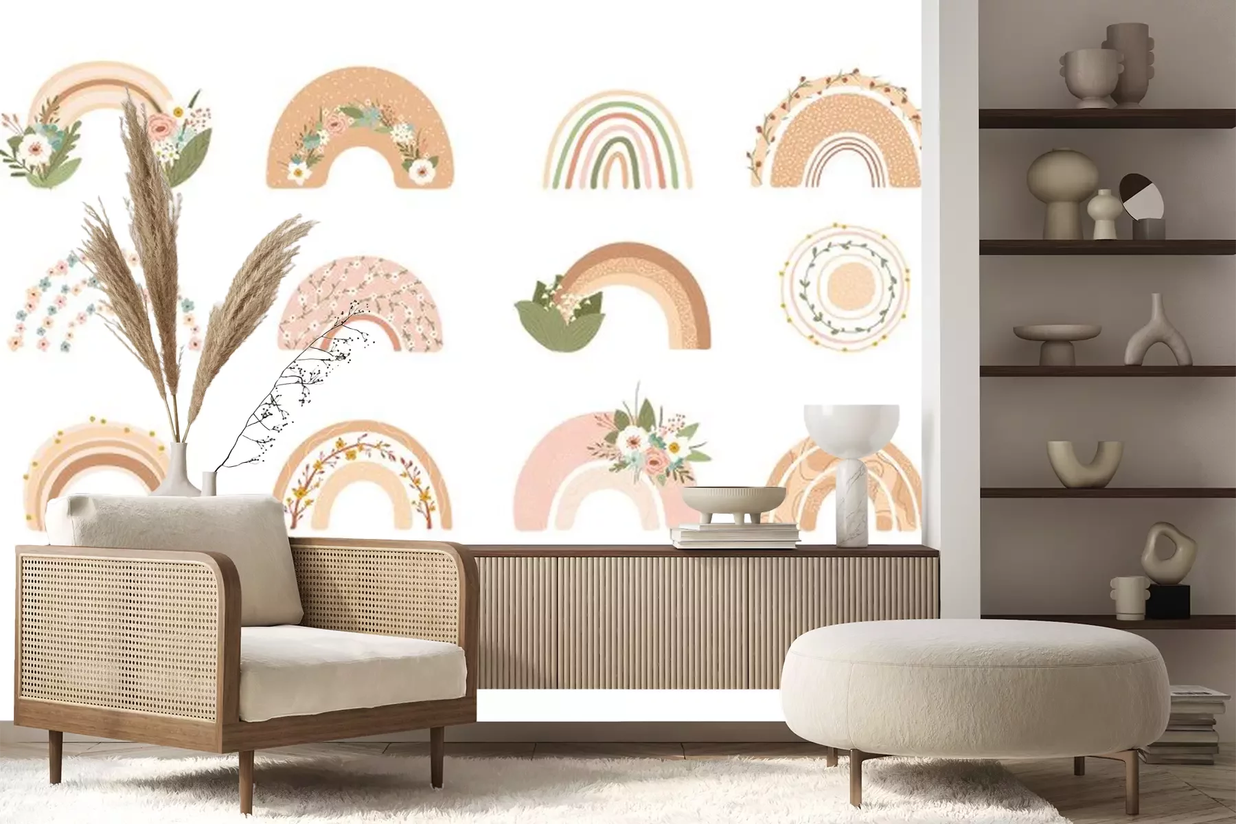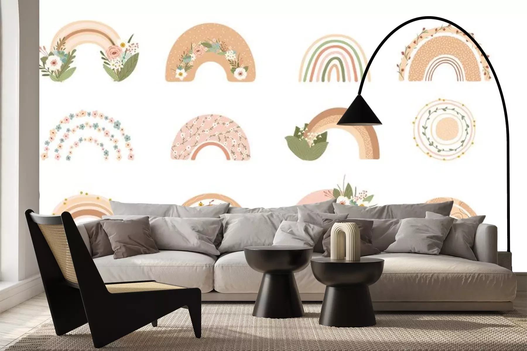Sticker Regenbogen aus Blumen in Pastellfarben