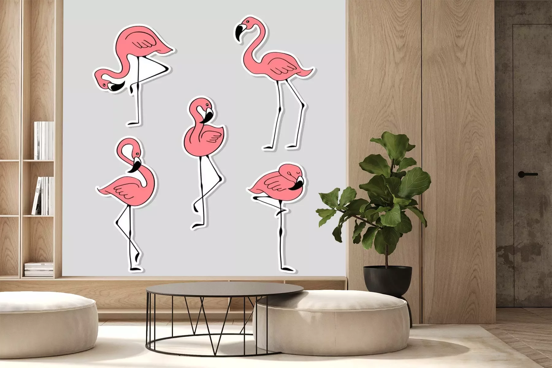 Sticker Reihe von Flamingos in verschiedenen Positionen