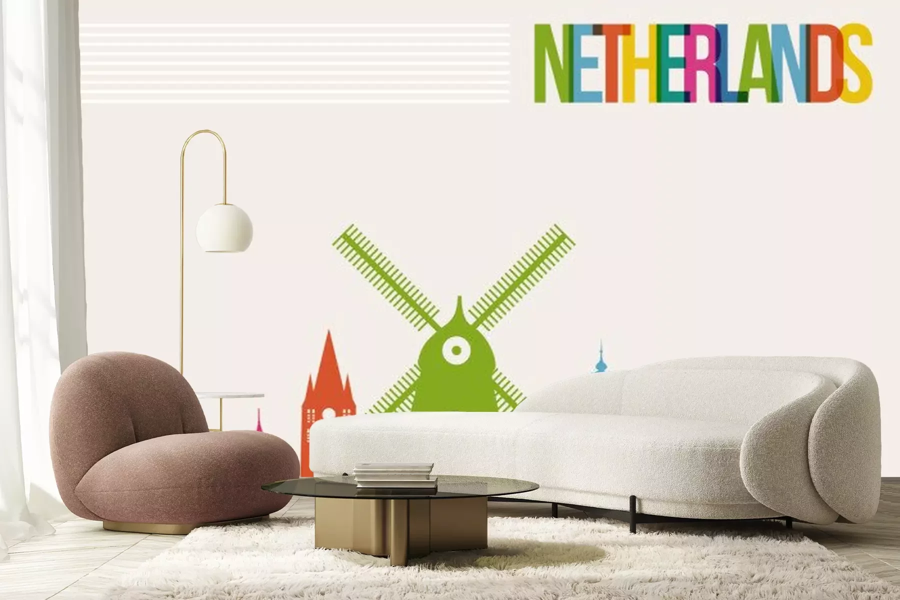 Sticker Reisen Niederlande Ziel der Sehenswürdigkeiten Skyline Hintergrund