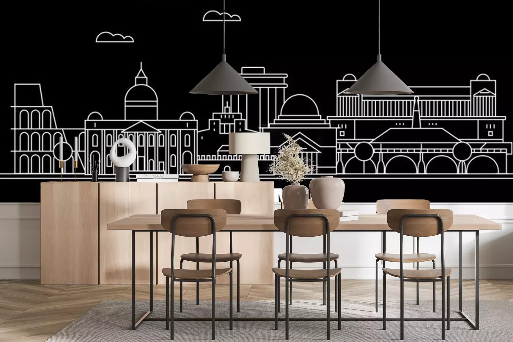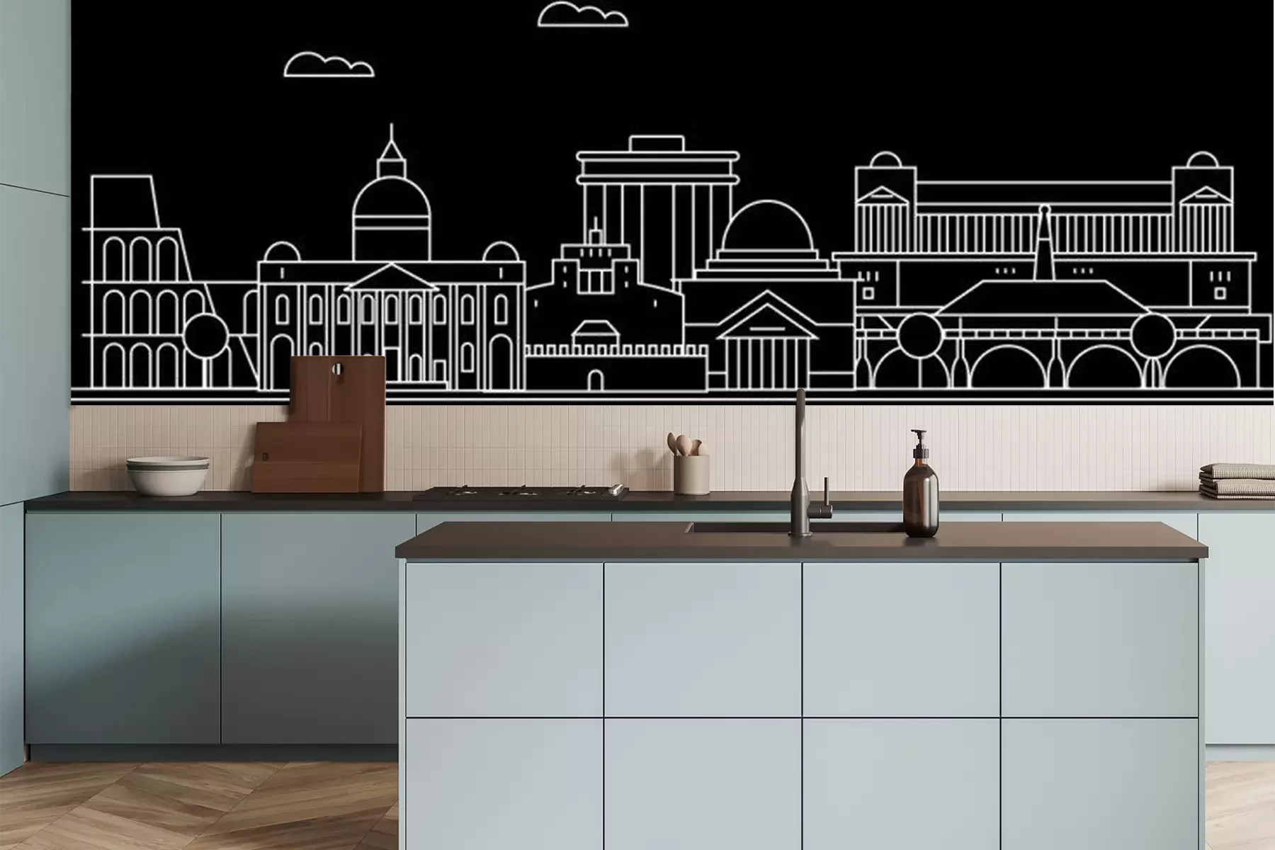 Sticker Rom Silhouette Skyline. Italien - Rom-Vektorstadt, italienische lineare Architektur, Gebäude. Rom-Linie Reiseillustration, Marksteine. Flache Ikone Italiens, italienische Entwurfsdesignfahne